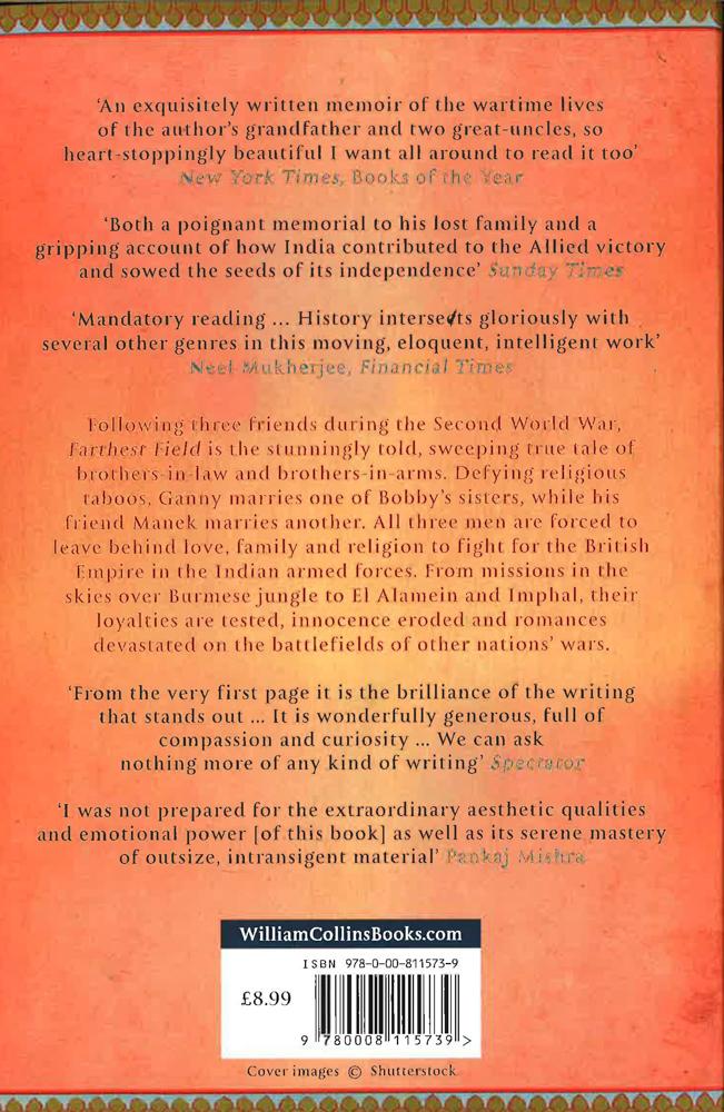 Described as `a masterpiece' by critics, this remarkable book tells the story of war through the lives and deaths of a single family. Absolutely unforgettable new writing. If you loved The English Patient or Rohinton Mistry's Fine Balance or Katherine Boo's Behind the Beautiful Forevers, you will love this book. Three young men gazed at him from silver-framed photographs in his grandmother's house, `beheld but not noticed, as angels are in a frieze full of mortal strugglers'. They had all been in the Second World War, a fact that surprised him. Indians had never figured in his idea of the war, nor the war in his idea of India - and he thought that he had a good idea of both. One of them, Bobby, even looked a bit like him, but Raghu Karnad had not noticed until he was the same age as they were in their photo-frames. Then he learned about the Parsi boy from the sleepy south Indian coast, so eager to follow his brothers-in-law into the colonial forces and onto the front line. Manek, dashing and confident, was a pilot with India's fledgling air force; gentle Ganny became an army doctor in the arid North-West Frontier. Bobby's pursuit would carry him as far as the deserts of Iraq and the green hell of the Burma battlefront. The years 1939-45 might be the most revered, deplored and replayed in modern history. Yet India's extraordinary role has been concealed, from itself and from the world. In riveting prose, Karnad retrieves the story of a single family - a story of love, rebellion, loyalty and uncertainty - and with it, the greatest revelation that is India's Second World War. Farthest Field narrates the lost epic of India's war, in which the largest volunteer army in history fought for the British Empire, even as its countrymen fought to be free of it. It carries us from Madras to Peshawar, Egypt to Burma - unfolding the saga of a young family amazed by their swiftly changing world and swept up in its violence.