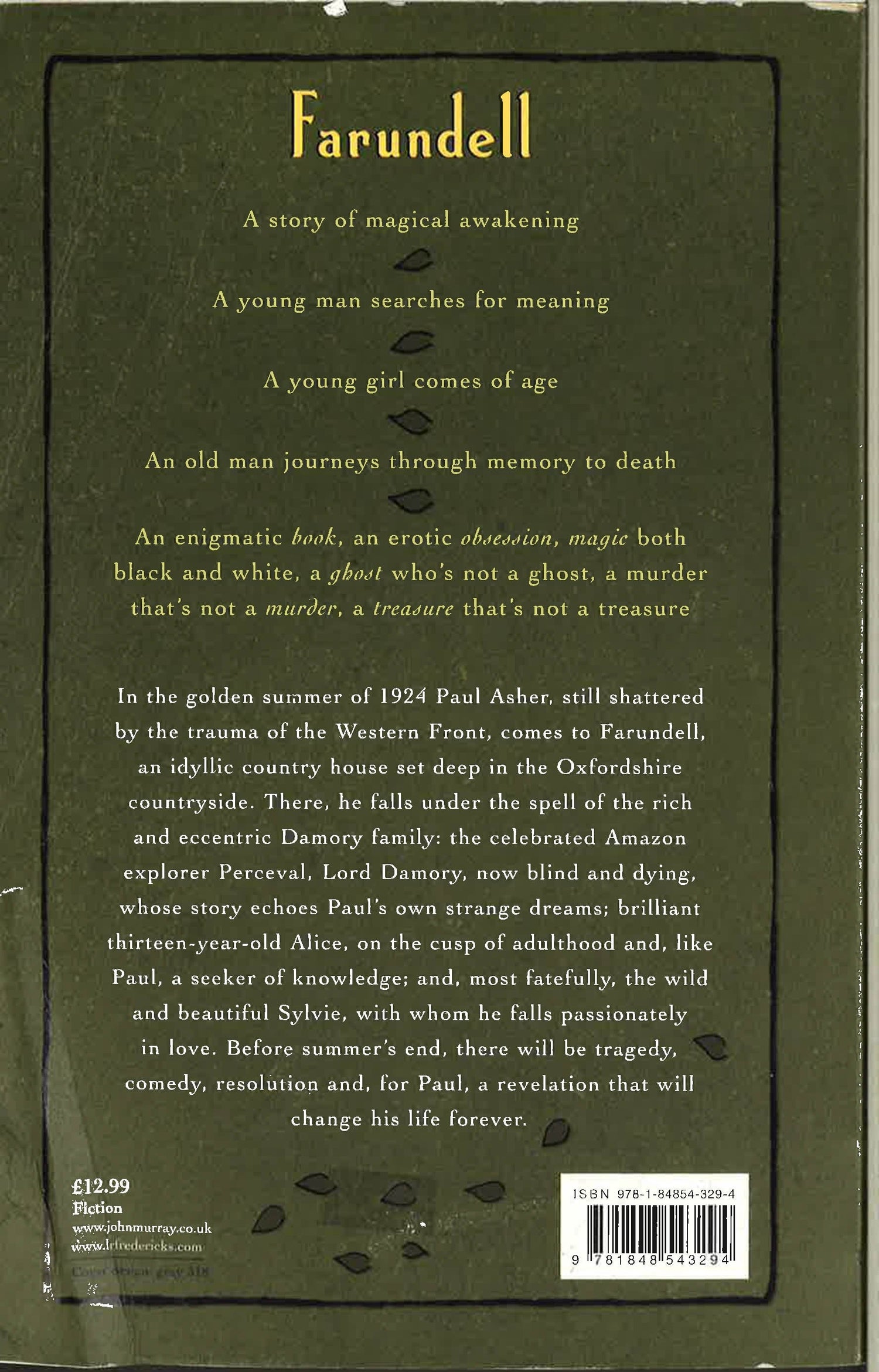 In the golden summer of 1924 Paul Asher, still shattered by the trauma of the Western Front, comes to Farundell, an idyllic country house set deep in the Oxfordshire countryside. There, he falls under the spell of the rich and eccentric Damory family: the celebrated Amazon explorer Perceval, Lord Damory, now blind and dying, whose story echoes Paul's own strange dreams, brilliant thirteen-year-old Alice, on the cusp of adulthood and, like Paul, a seeker of knowledge and, most fatefully, the wild and beautiful Sylvie, with whom he falls passionately in love. Before summer's end, there will be tragedy, comedy, resolution and, for Paul, a revelation that will change his life forever.