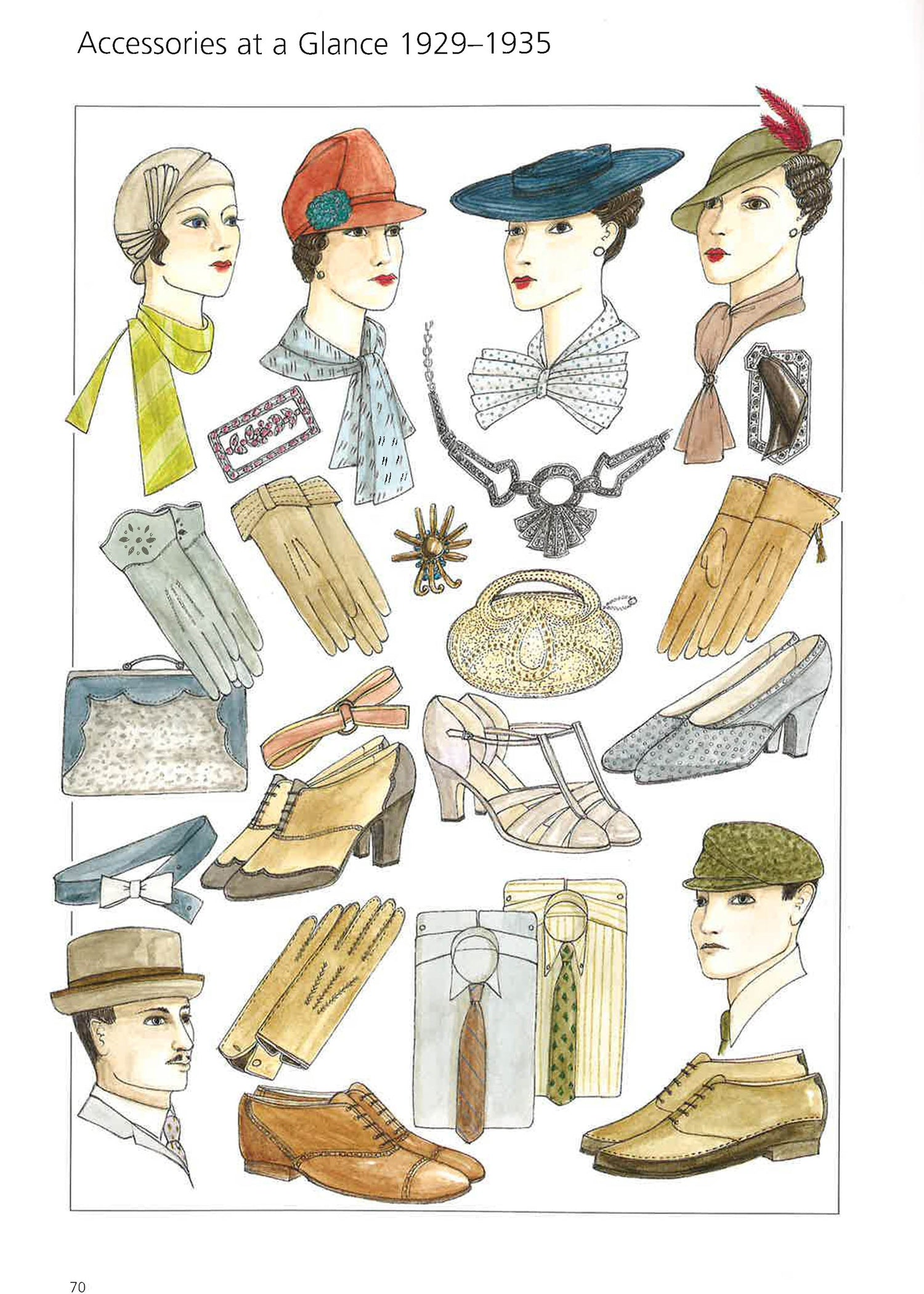 More than 2000 full-color drawings?the result of extensive research into paintings, photographs, and the accessories themselves?reproduce each original item in meticulous detail, accompanied by a complete description. The book covers every kind of high-fashion male and female accessory for both day and evening wear: hats and caps; shoes, boots, slippers, and sandals; bags and purses; umbrellas and parasols; jewelry; scarves, stoles, and capes; gloves and belts; cravats, ties, and bow-ties. It includes a wide range of streetwear and sportswear, from baseball caps to plastic sandals, and every variety of the ubiquitous late-century sports shoe. All the century's archetypal accessories are identified, from the luxurious ostrich-feather and flower-bedecked hat of the 1910s and the cloche and pearl necklace of the 1920s, to the velvet scarf and mini-backpack of the 1990s.
