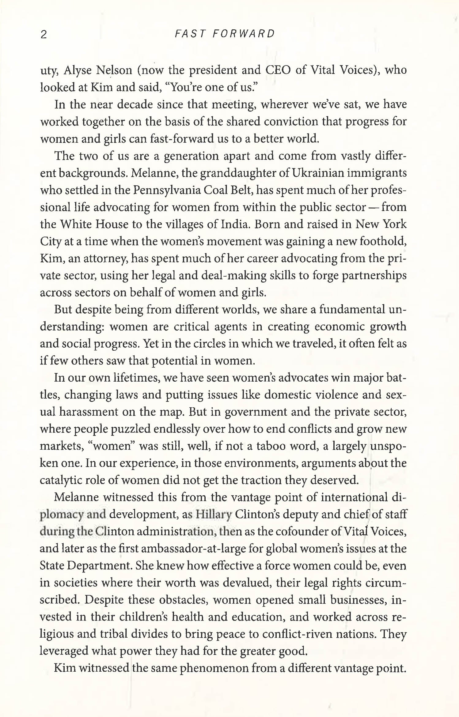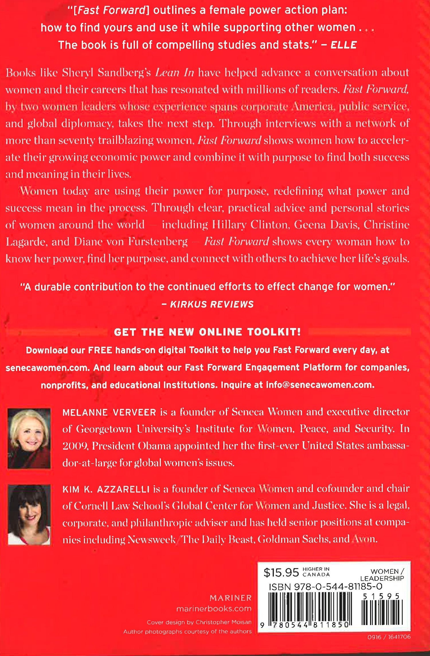 Ensuring the full participation of women and girls is the great unfinished business of the twenty-first century. The stories in this book of people making a difference give me hope. We can use our power and purpose to help all women. And once we do, we can fast-forward to a better world for all." -- from the foreword by Hillary Rodham Clinton "[Fast Forward] outlines a female power action plan: how to find yours and use it while supporting other women . . . The book is full of compelling studies and stats." -- Elle Books like Sheryl Sandberg's Lean In have helped advance a conversation about women and their careers that has resonated with millions of readers. Fast Forward, by two women leaders whose experience spans corporate America, public service, and global diplomacy, takes the next step. Through interviews with a network of more than seventy trailblazing women, Fast Forward shows women how to accelerate their growing economic power and combine it with purpose to find both success and meaning in their lives. Companies, countries, and organizations the world over are waking up to today's new reality. Women control the lion's share of purchasing power and are increasingly essential to competitiveness. Women are using their power for purpose, redefining what power and success mean in the process. Through clear, practical advice and personal stories of women around the world -- including Hillary Clinton, Geena Davis, Christine Lagarde, and Diane von Furstenberg -- Fast Forward shows every woman how to know her power, find her purpose, and connect with others to achieve her life's goals.