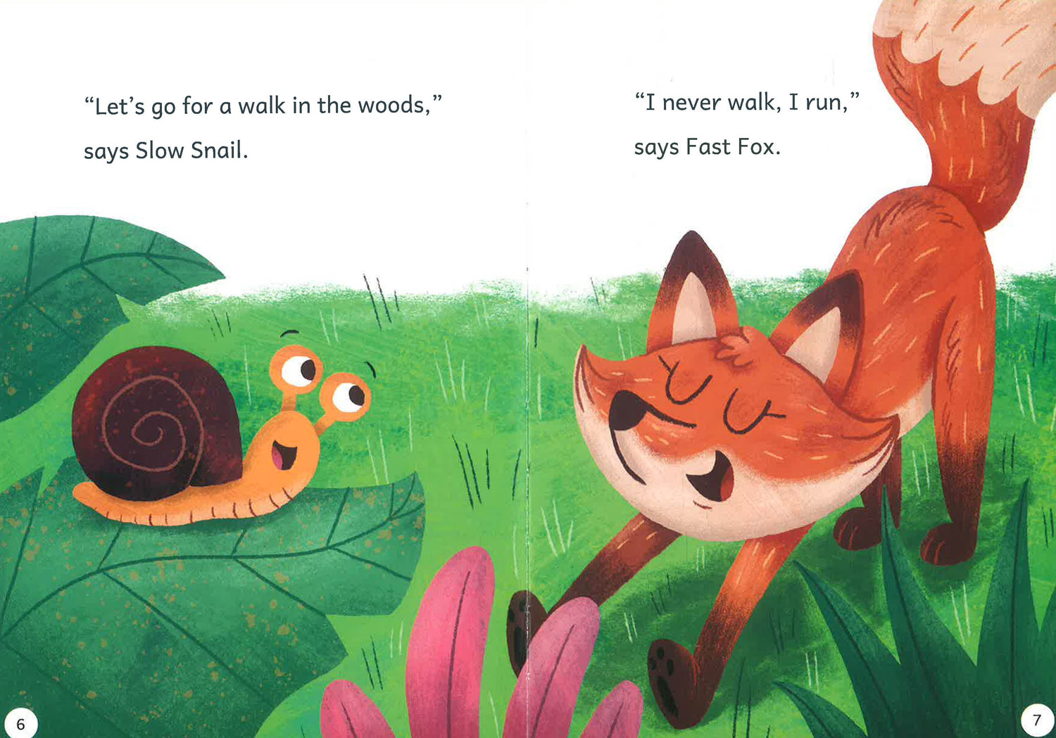 Fast Fox and slow snail go on a walk in the woods together. Fast Fox likes to run but she loses slow snail. Is slow snail really lost or does he just like to go slow. Maverick early readers are a bright, attractive range of leveled books covering 10 levels, from the pink to white bands. The colour banding system allows an emerging reader to track their progression through the reading levels and develop their reading skills. From basic stories using phonics and high-frequency words, to Chapter books, The maverick readers are a great way to start your childs reading journey.