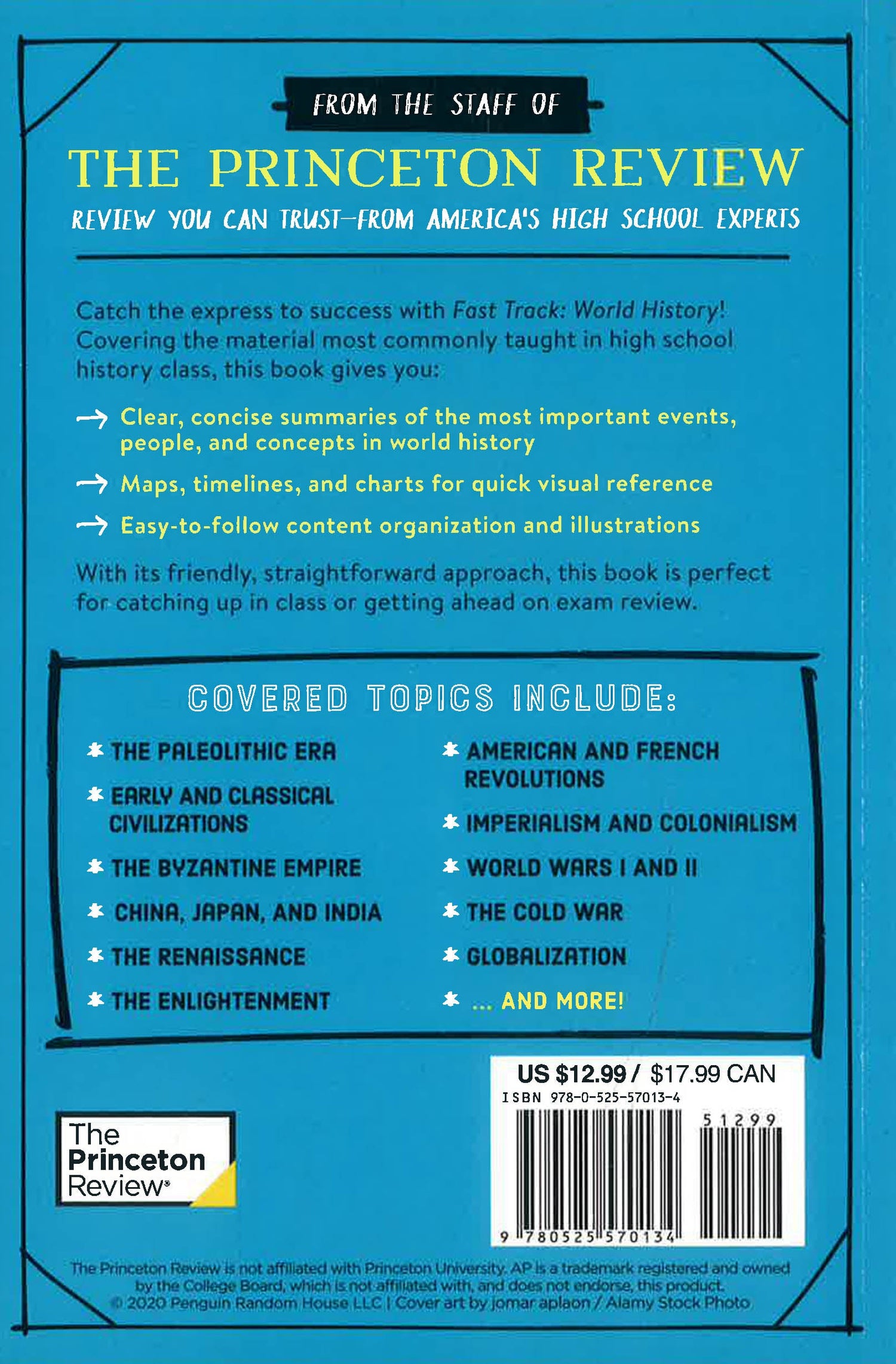 GET UP TO SPEED WITH FAST TRACK: WORLD HISTORY! Covering the most important material taught in high school history class, this essential review book breaks need-to-know content into accessible, easily-understood lessons.