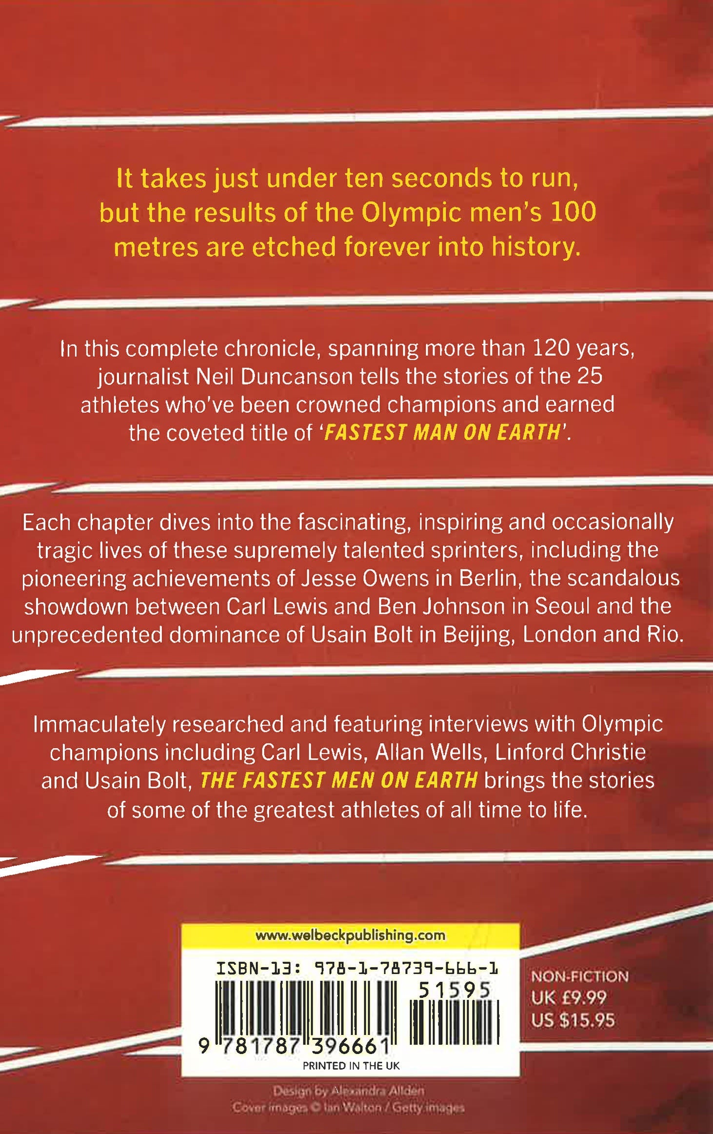 It takes just under ten seconds to run, but the results of the Olympic men's 100 metres are etched forever into history. In The Fastest Men on Earth, journalist Neil Duncanson tells the stories of the 25 athletes who've been crowned champions in the event, and earned the coveted title of 'Fastest Man on Earth'.
