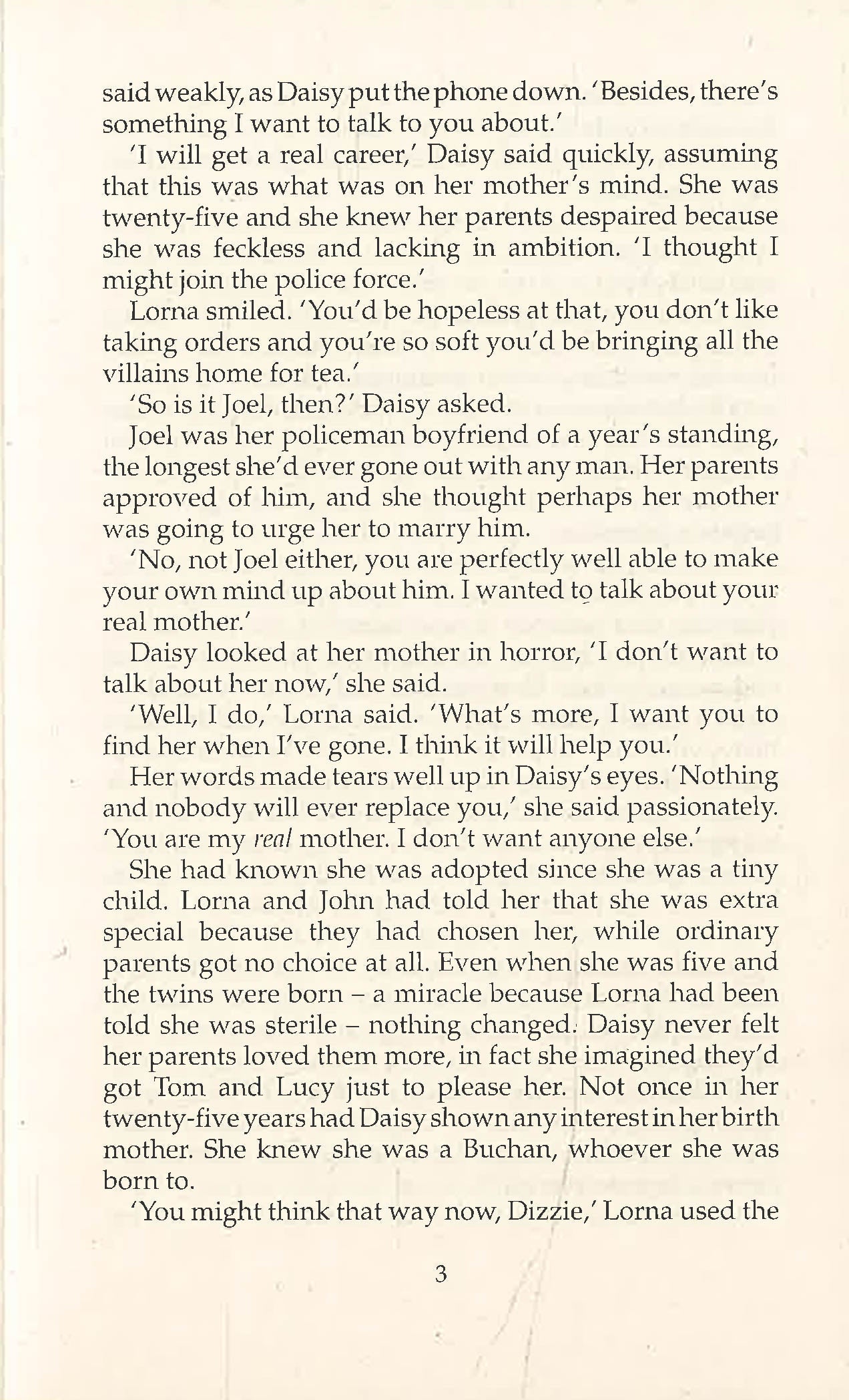 Daisy was adopted. But when her mother dies, she finds her secure existence thrown into turmoil by the discovery of a scrapbook.