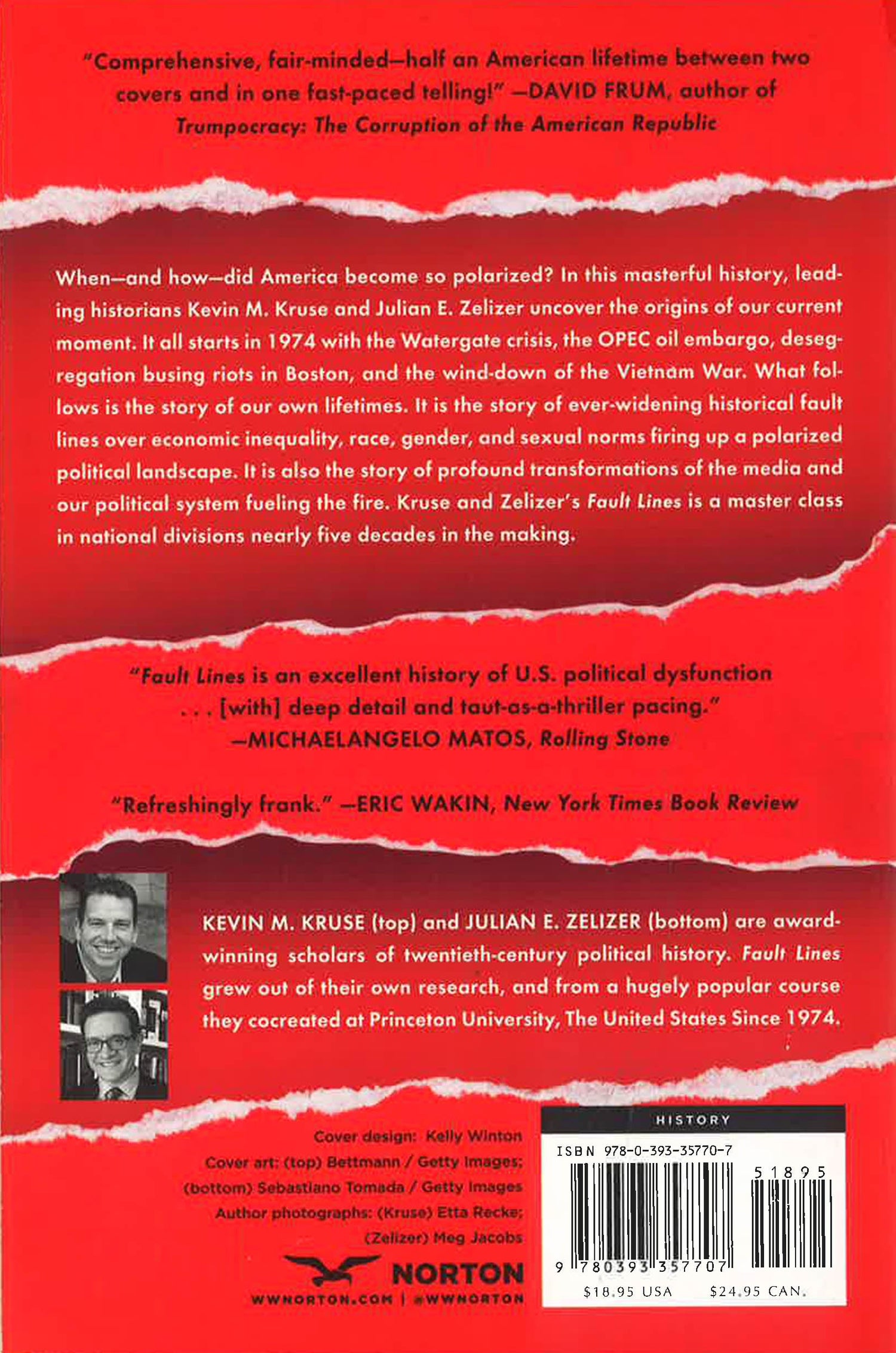 In the middle of the 1970s, America entered a new era of doubt and division. Major political, economic and social crises―Watergate, Vietnam, the rights revolutions of the 1960s–had cracked the existing social order. In the years that followed, the story of our own lifetimes would be written. Longstanding historical fault lines over income inequality, racial division and a revolution in gender roles and sexual norms would deepen and fuel a polarised political landscape. In Fault Lines, leading historians Kevin M. Kruse and Julian E. Zelizer reveal how the divisions of the present day began almost four decades ago, and how they were echoed and amplified by a fracturing media landscape that witnessed the rise of cable TV, the Internet and social media.