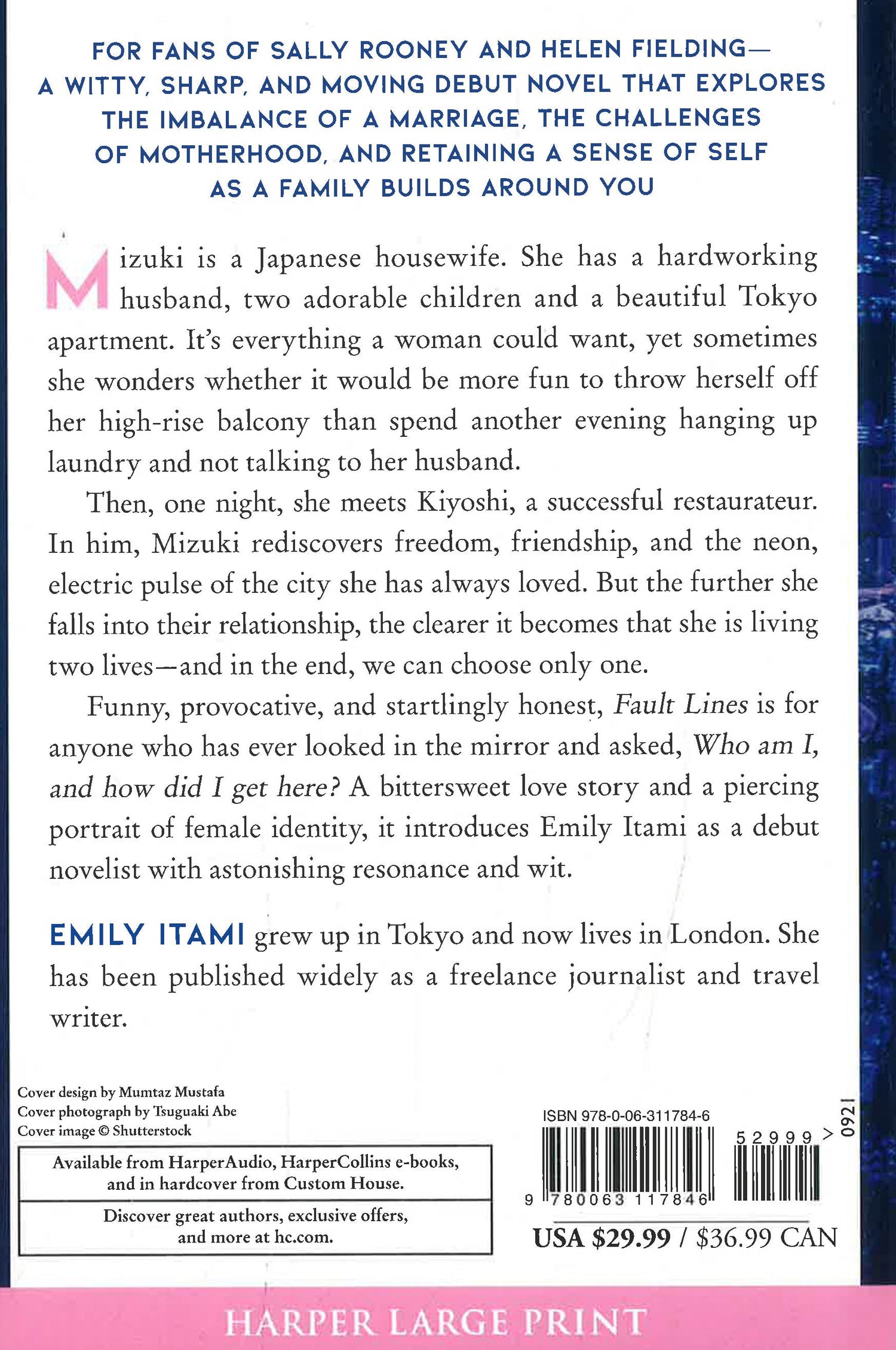 Funny, provocative, and startlingly honest, Fault Lines is for anyone who has ever looked in the mirror and asked, who am I and how did I get here? A bittersweet love story and a piercing portrait of female identity, it introduces Emily Itami as a debut novelist with astounding resonance and wit.