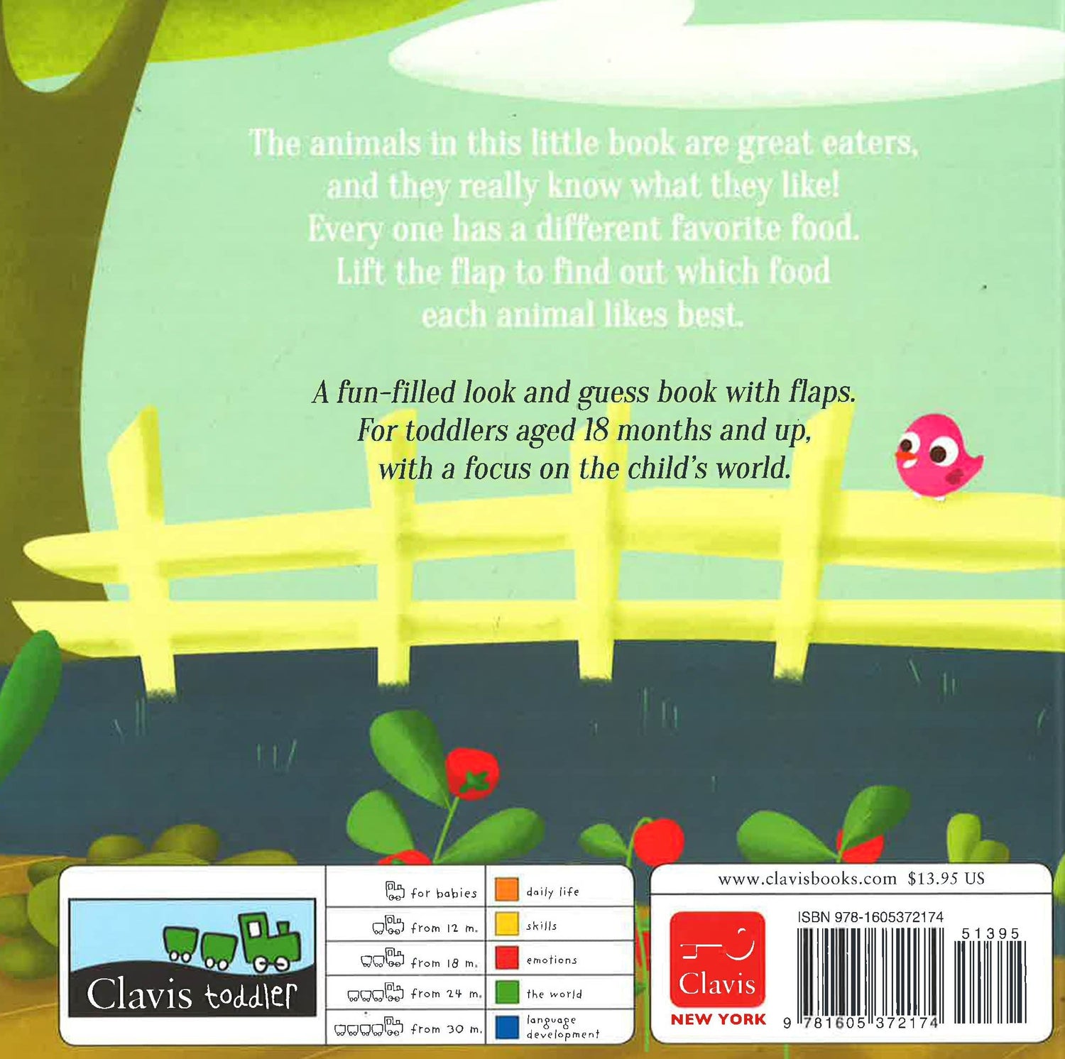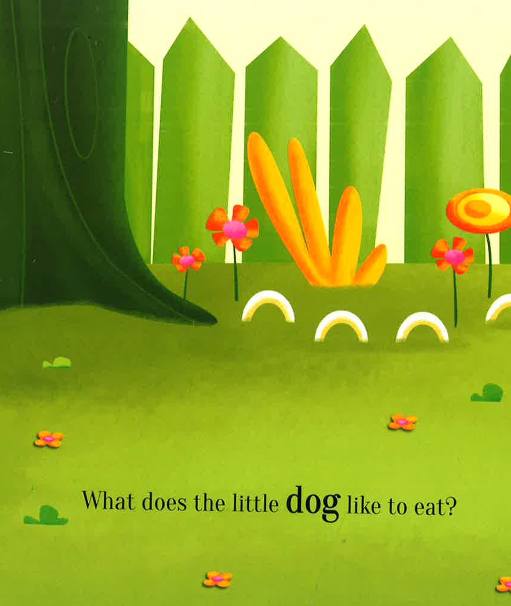 The animals in this little book are great eaters, and they really know what they like! Every one has a different favorite food. Lift the flap to find out which food each animal likes best.