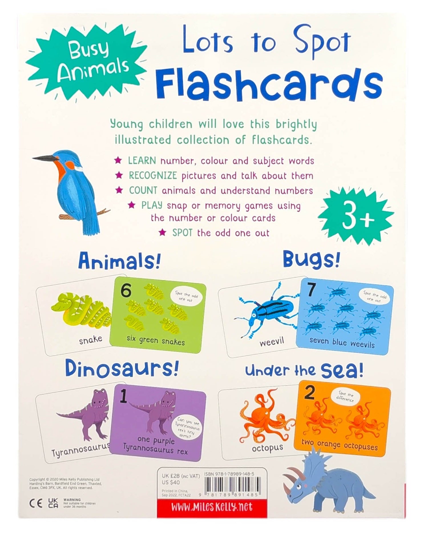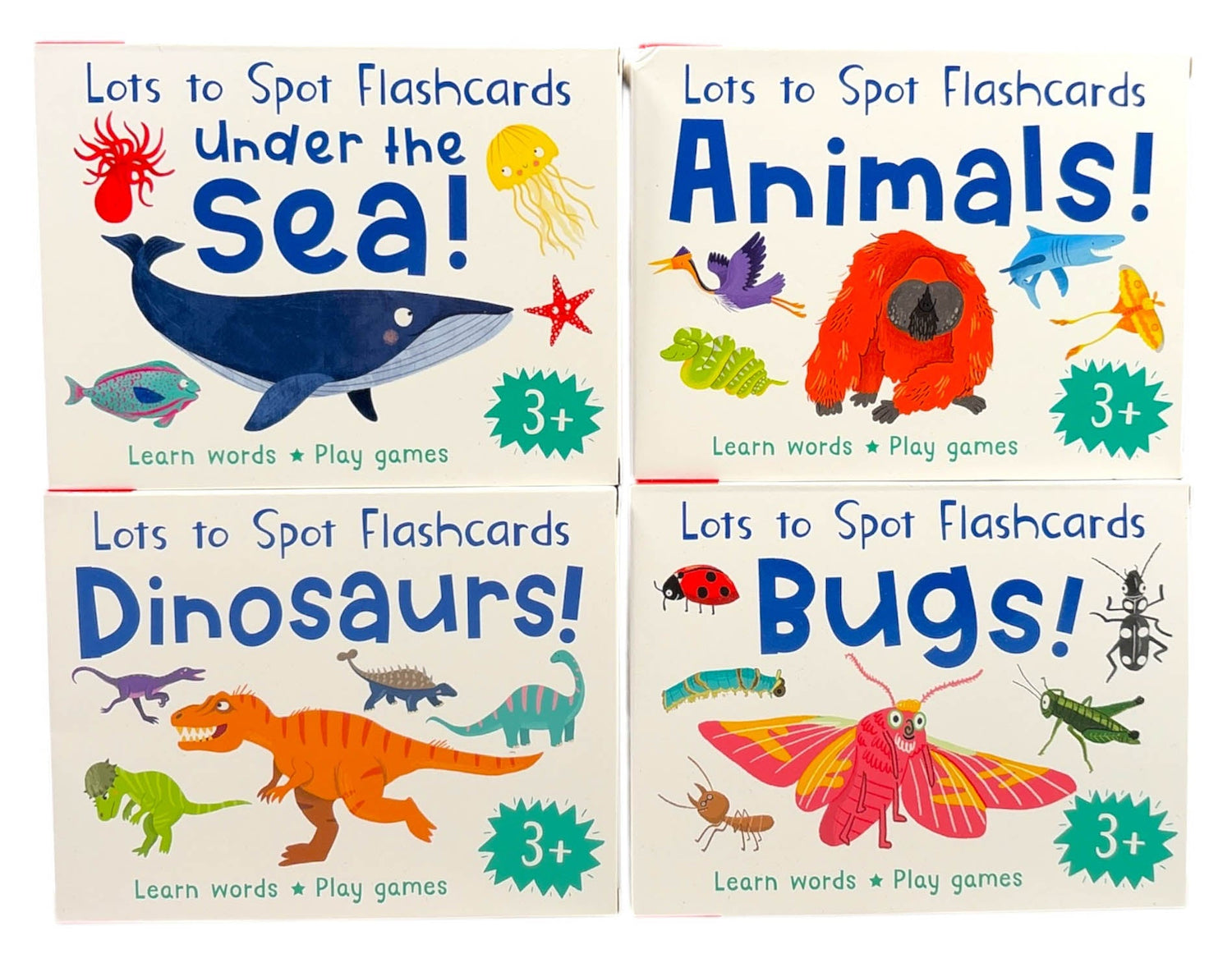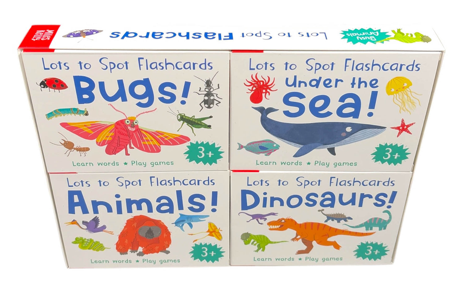 This set of four packs of double-sided flashcards is designed to engage young children. Each set looks at numbers, colours and simple words alongside bold illustrations of both familiar and unusual animals, allowing children to learn through play. The sets include: Bugs, Dinosaurs, Under the Sea and Wild Animals.