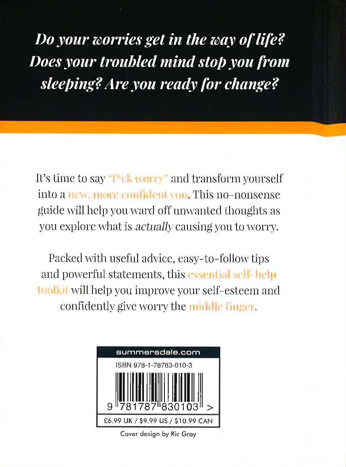 Do your worries get in the way of life? Does your troubled mind stop you from sleeping? Are you ready for change? It's time to say "f*ck worry" and transform yourself into a new, more confident you. This no-nonsense guide will help you ward off unwanted thoughts as you explore what is actually causing you to worry. Packed with useful advice, easy-to-follow tips and powerful statements, this essential self-help toolkit will help you improve your self-esteem and confidently give worry the middle finger.