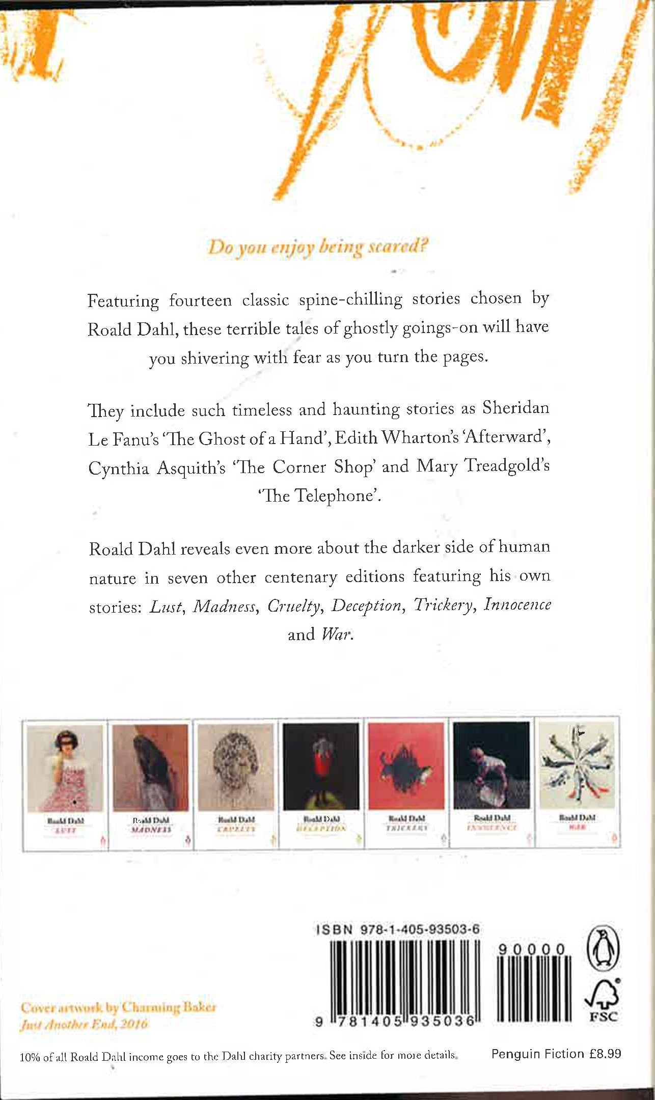 Fear is a collection of deliciously dark ghost stories for adults, picked by Roald Dahl himself... Do you enjoy being scared? Featuring fourteen classic spine-chilling stories chosen by Roald Dahl, these terrible tales of ghostly goings-on will have you shivering with fear as you turn the pages. They include such timeless and haunting stories as Sheridan Le Fanu's The Ghost of a Hand, Edith Wharton's Afterward, Cynthia Asquith's The Corner Shop and Mary Treadgold's The Telephone.