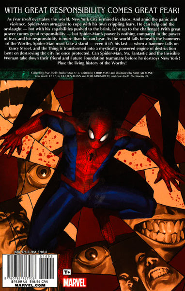 As Fear Itself overtakes the world, New York City is mired in chaos . . . and Spider-Man struggles to cope with his own crippling fears. He can help end the onslaught - but with his capabilities pushed to the brink, is he up to the challenge? With great power comes great responsibility - but Spider-Man's power is nothing compared to the power of fear, and his responsibility is more than he can bear. As the world falls beneath the Worthy, Spider-Man must take a stand - even if it's his last - when a hammer falls on Yancy Street, and the Thing is transformed into a mystically powered engine of destruction.
