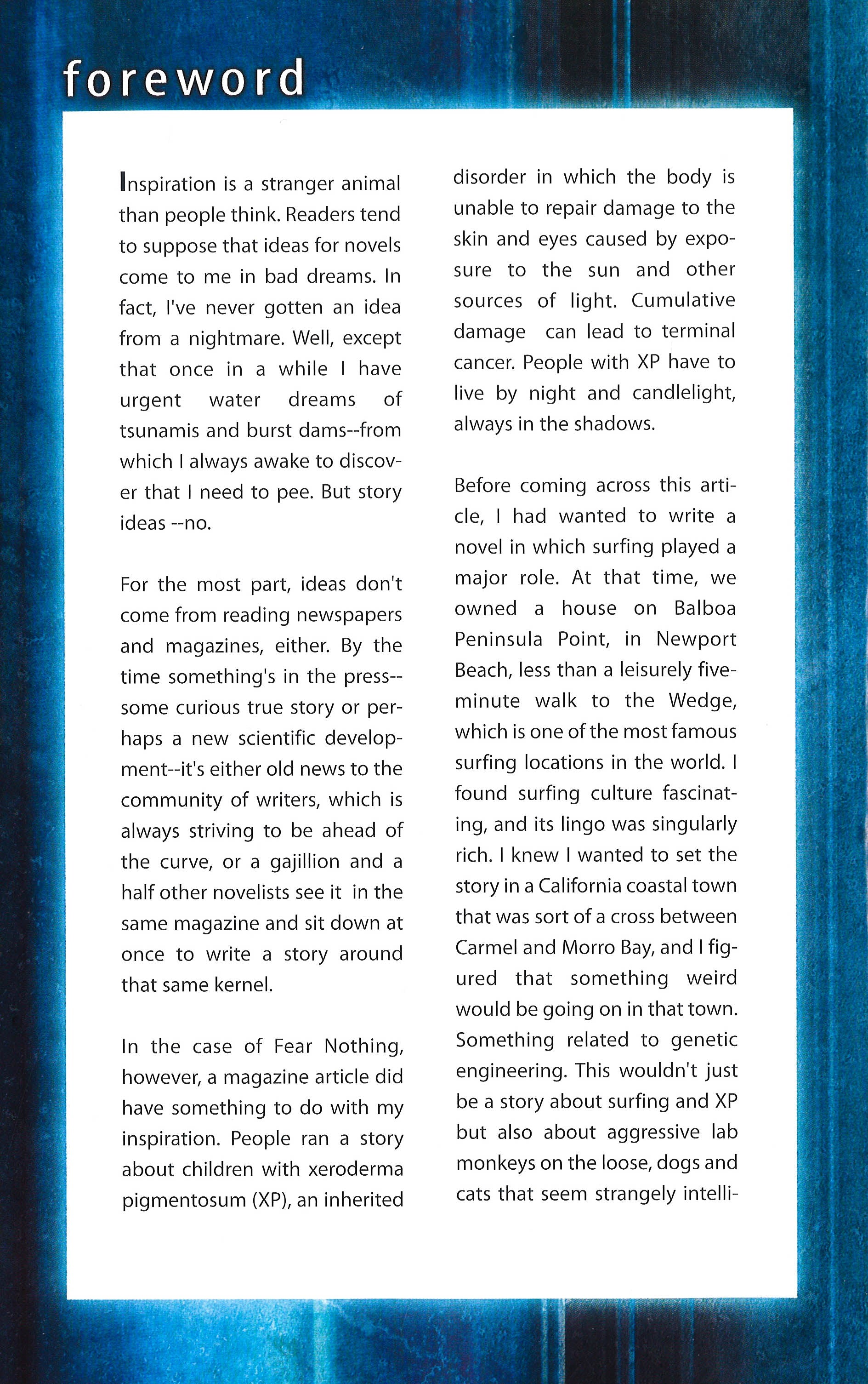 Fear Nothing features all the pulse pounding thriller action and great character development Koontz fans have come to expect from his work, as well as a bit of comedy, and yes, even an army of evil mutant rhesus monkeys!