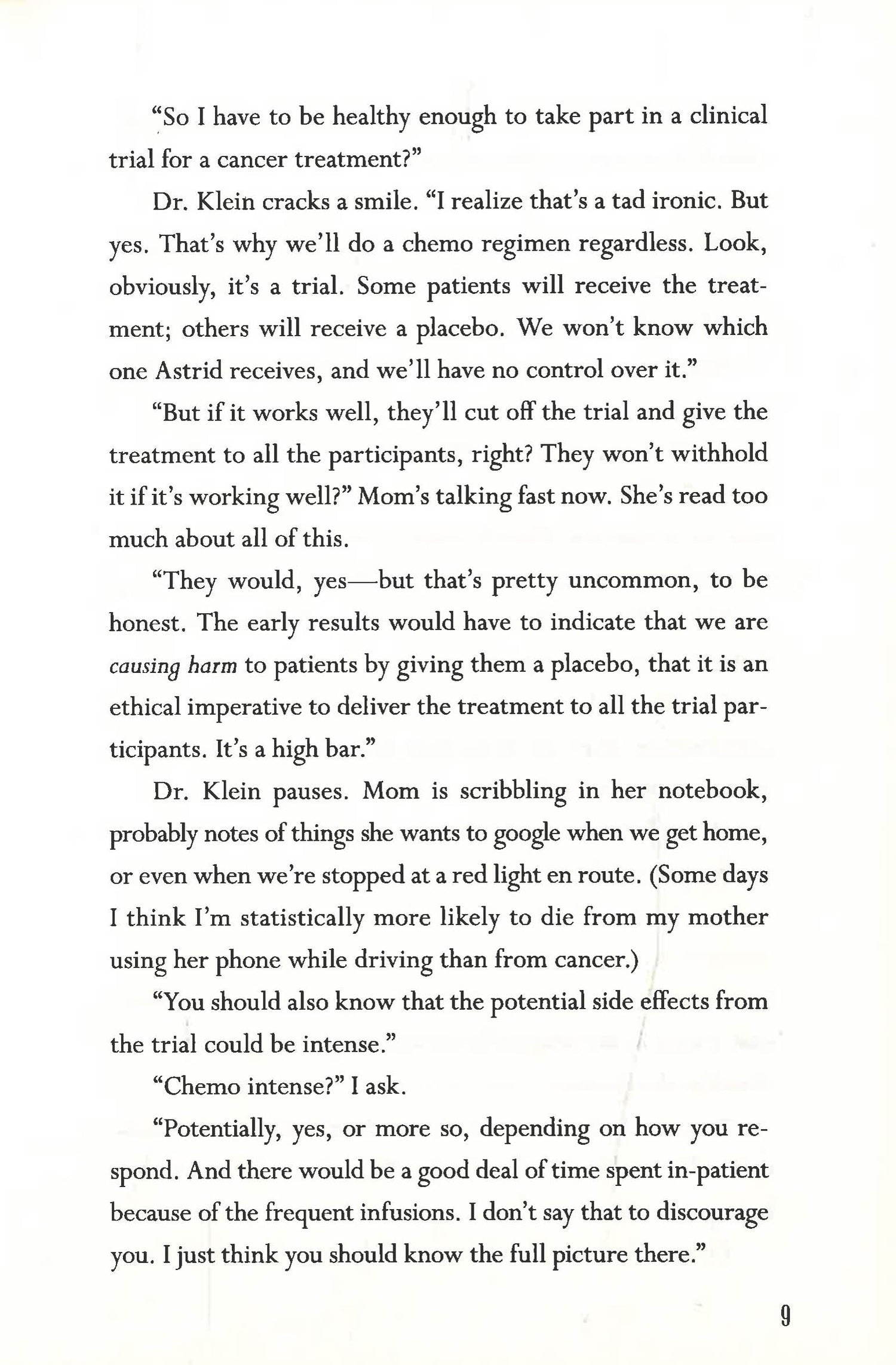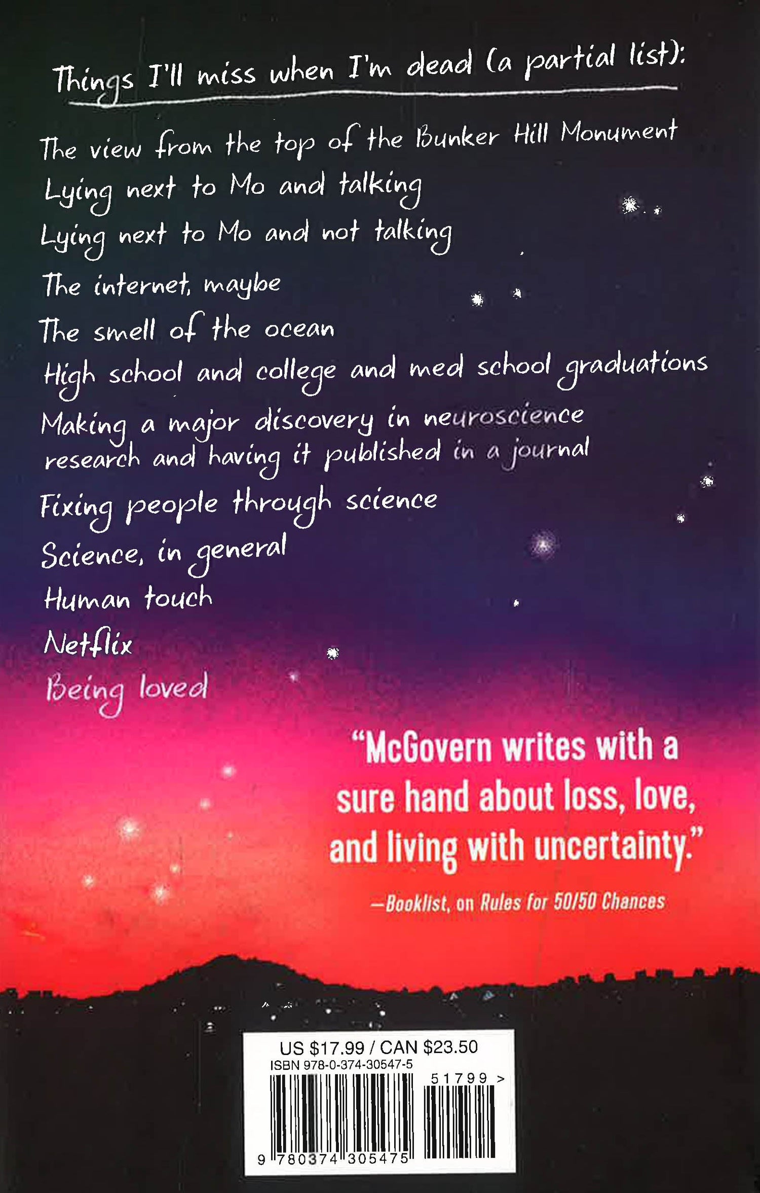 When Astrid learns that her cancer has returned, she hears about a radical technology called cryopreservation that may allow her to have her body frozen until a future time when―and if―a cure is available. With her boyfriend, Mohit, and her best friend, Chloe, Astrid goes on a road trip in search of that possibility. To see if it’s real. To see if it’s worth it. For fear of missing out on everything.