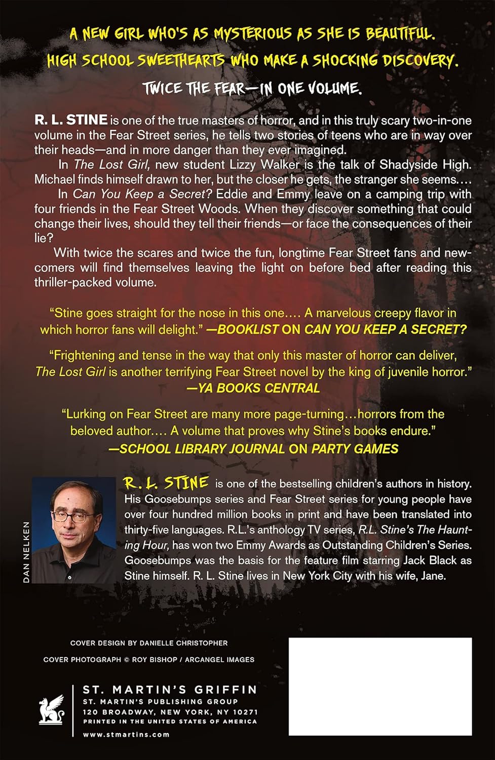 Now in one volume, master of horror R.L. Stine delivers two bone-chilling stories of teens in danger in the small town of Shadyside, where danger and violence looms on every darkened street corner. In The Lost Girl, Michael is fascinated by the new girl at school, who is both beautiful and mysterious. But where does she come from? Where does she live? And why is Michael so drawn to her? If Michael doesn't find out soon, he could find himself confronting a new and terrifying mystery--how to stay alive on Fear Street. In Can You Keep a Secret?, Eddie and Emma are high school sweethearts looking for some luck. When they discover a bag of money in the woods and their friends get involved, there's only one way this disagreement can end--with death. R.L. Stine delivers two terrifying stories about greed, lust, mystery, and what can happen when teens get in way over their heads.