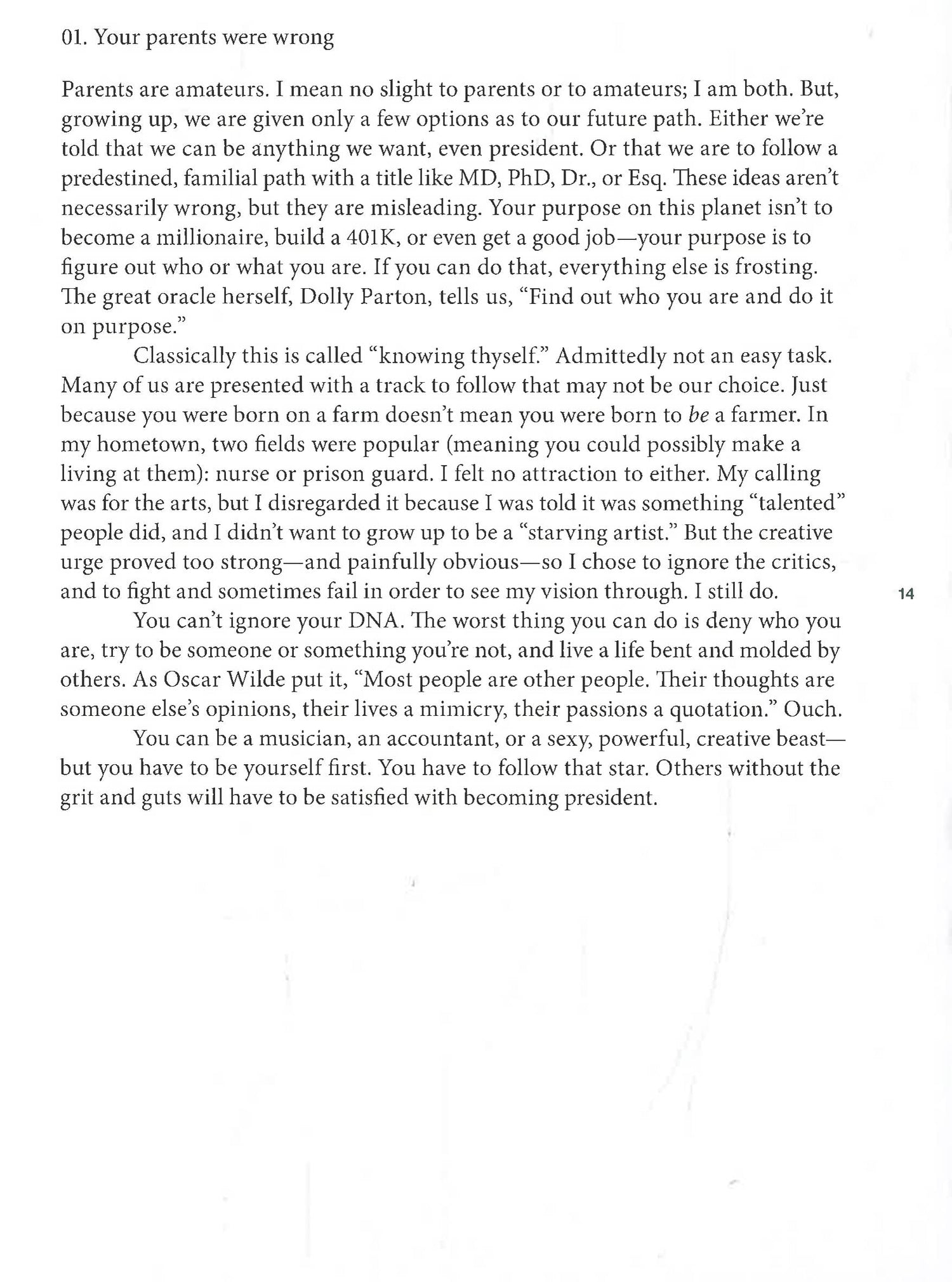 - Filled with humor and stern advice, Feck Perfuction provides "dangerous ideas" for unearthing your authentic self, including "the things that made you weird as a kid make you great today," "the struggle is everything," and many more.