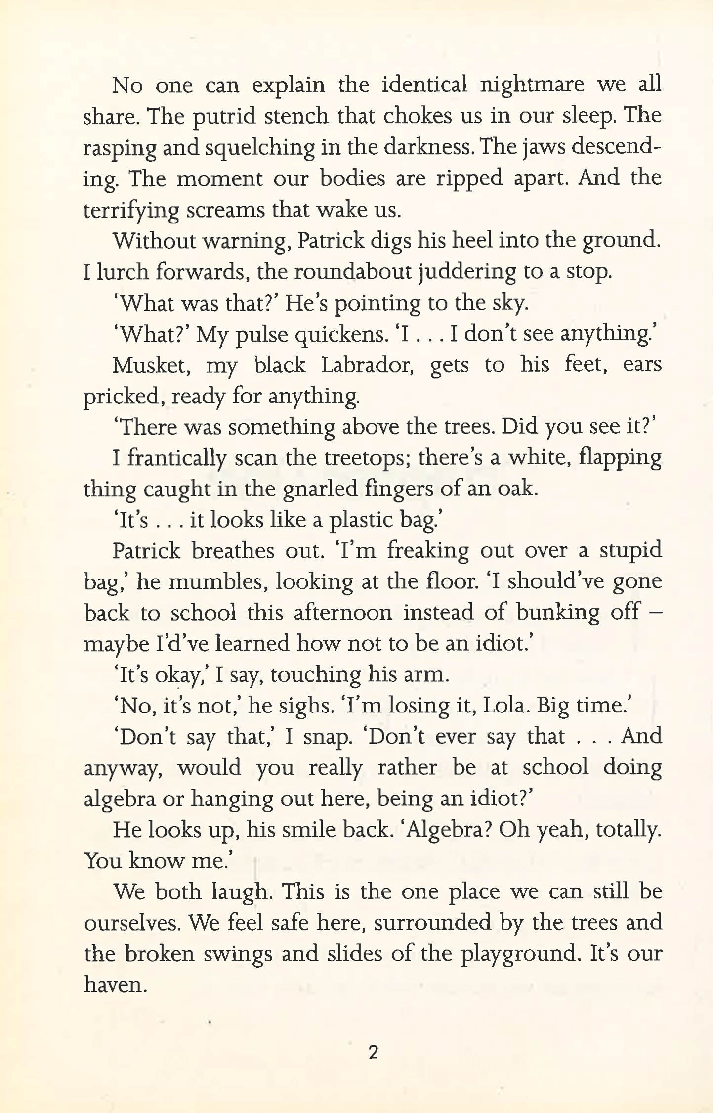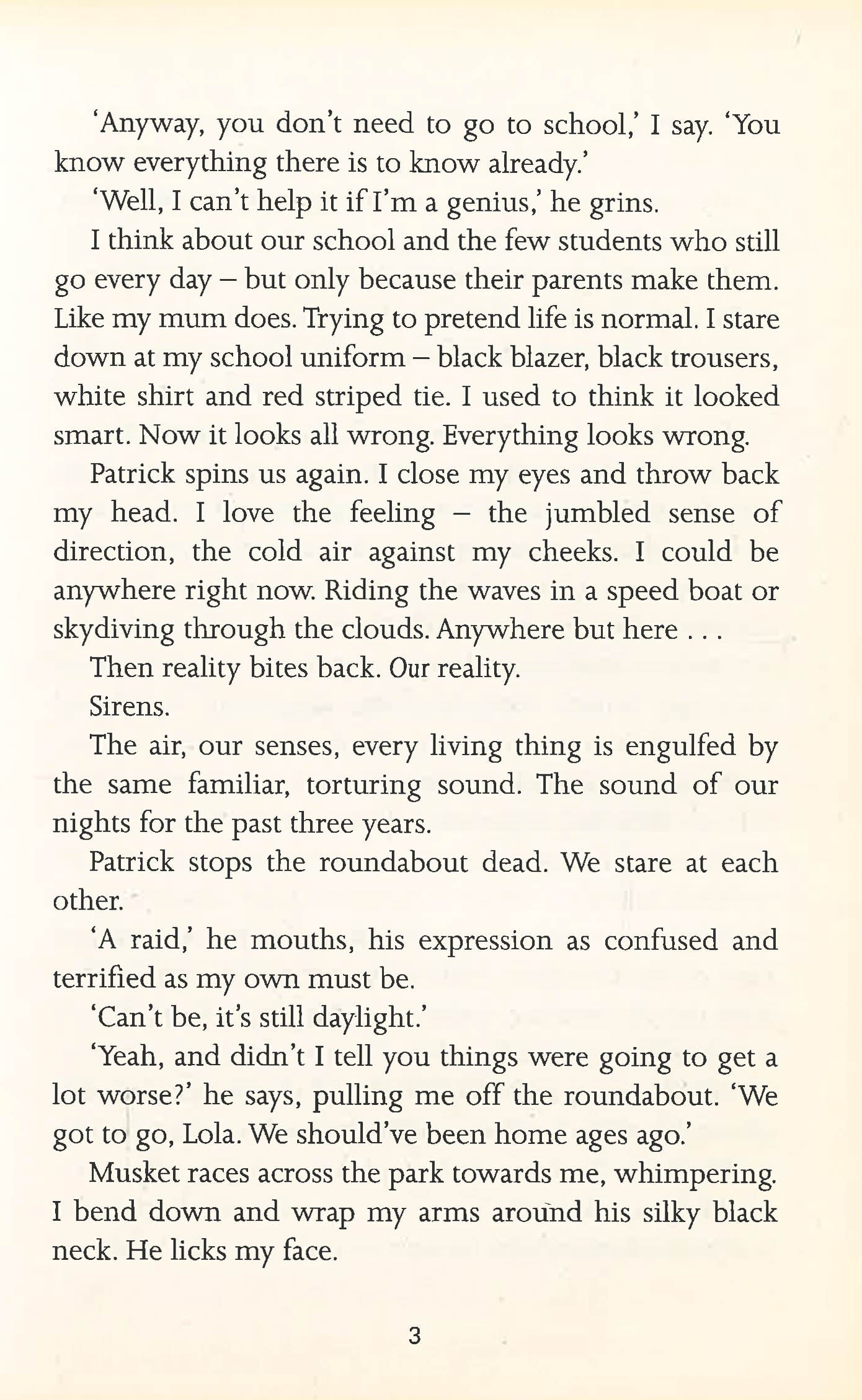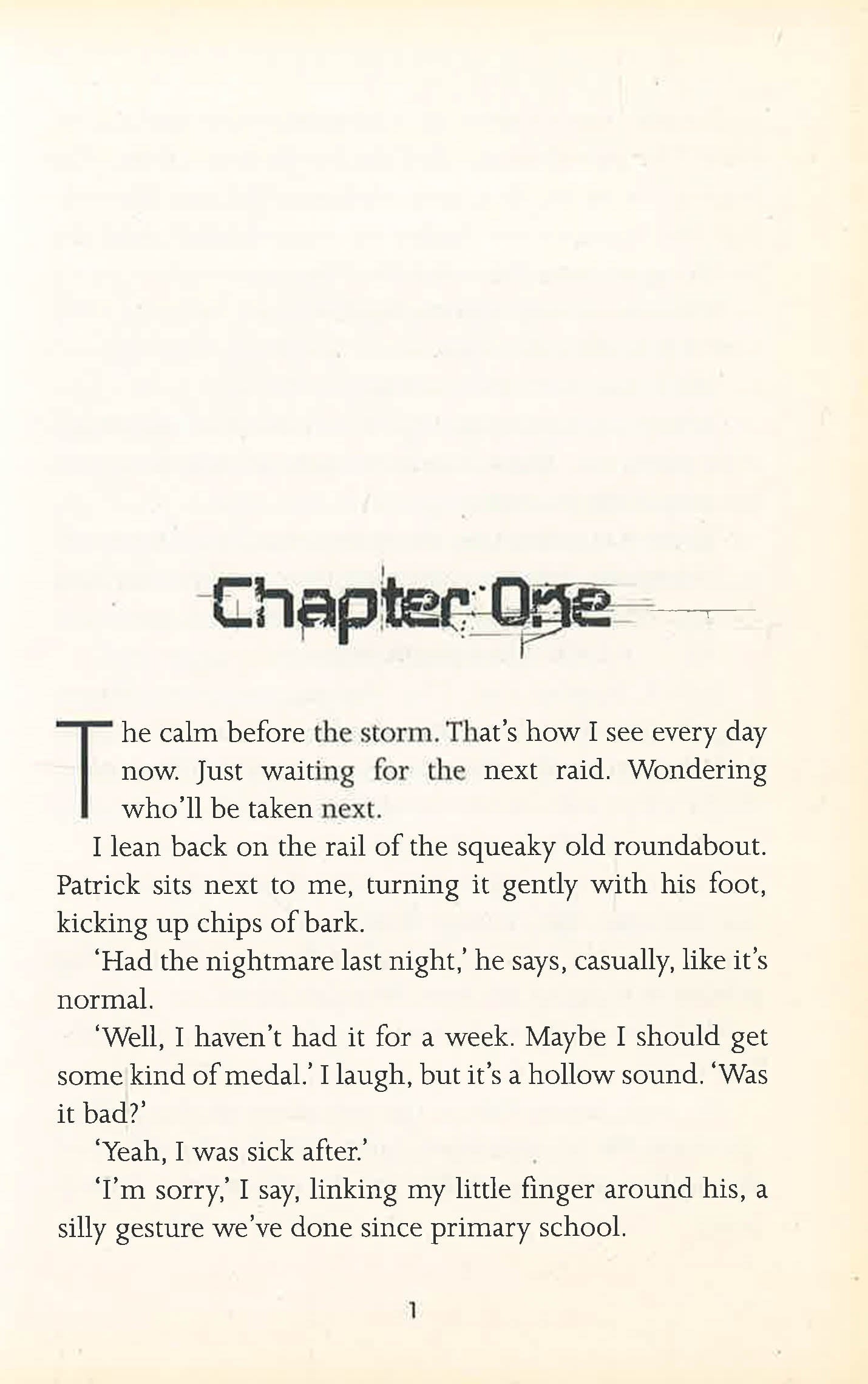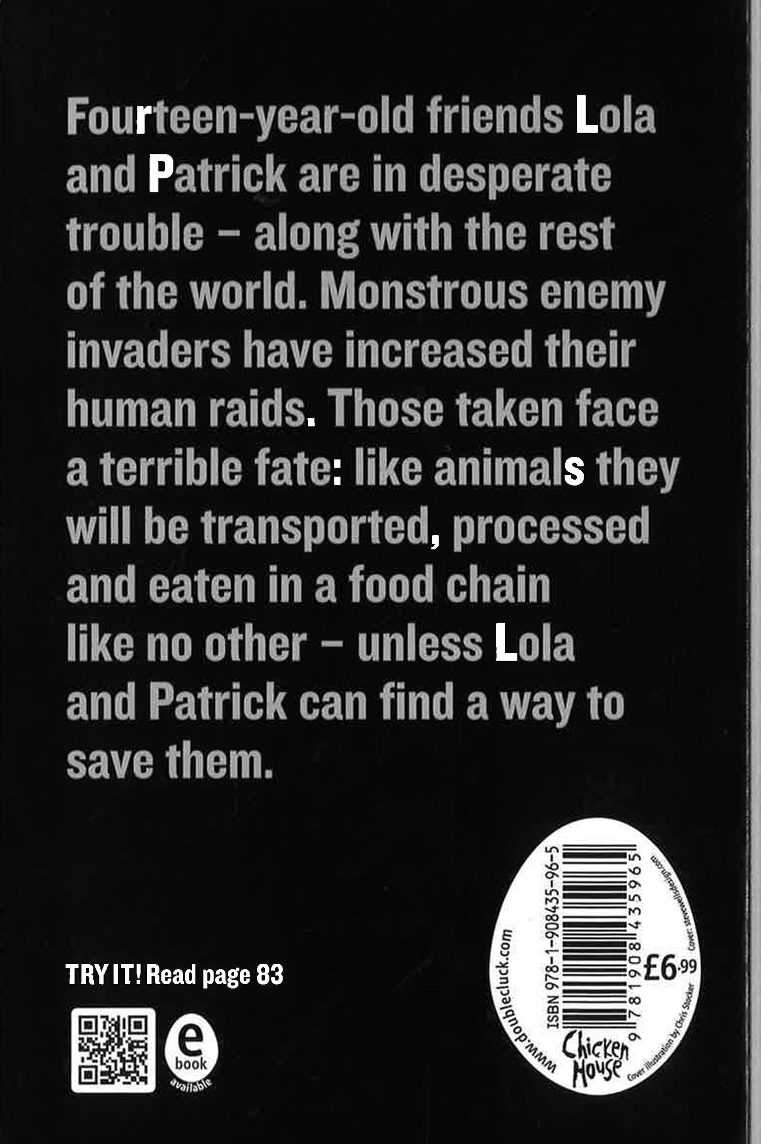 Fourteen-year-old friends Lola and Patrick are in desperate trouble - along with everybody else. Monstrous enemy invaders have increased their human raids. Those taken face a terrible fate: like animals they will be transported, processed and eaten in a food chain like no other - unless Lola and Patrick can find a way to save them.