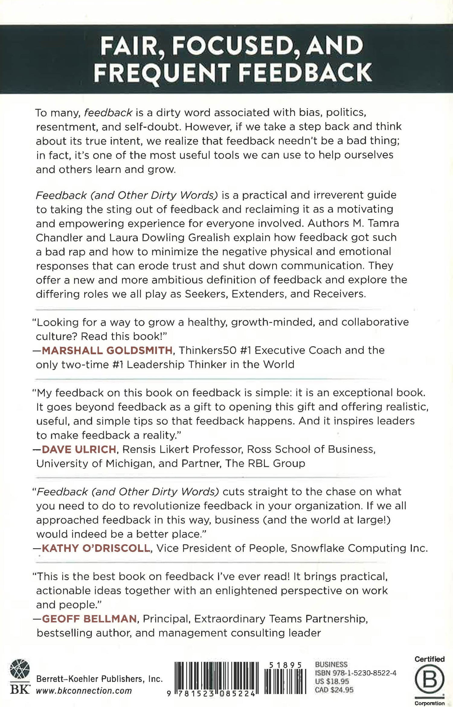 When it's done right, feedback has been proven to be the most effective means of improving communication and performance for you and your organization. It's too important to give up, and with Chandler and Grealish's help, you'll be able to use it deftly, equitably, and effectively.