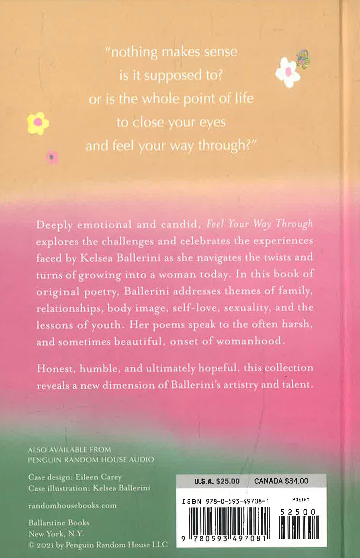 Deeply emotional and candid, Feel Your Way Through explores the challenges and celebrates the experiences faced by Kelsea Ballerini as she navigates the twists and turns of growing into a woman today. In this book of original poetry, Ballerini addresses themes of family, relationships, body image, self-love, sexuality, and the lessons of youth. Her poems speak to the often harsh, and sometimes beautiful, onset of womanhood. Honest, humble, and ultimately hopeful, this collection reveals a new dimension of Ballerini's artistry and talent.