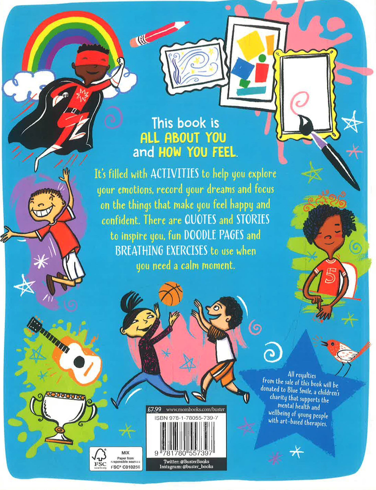 The book has been developed in consultation with a children’s mental health charity, Blue Smile, and a royalty of UK sales will be donated to the charity.