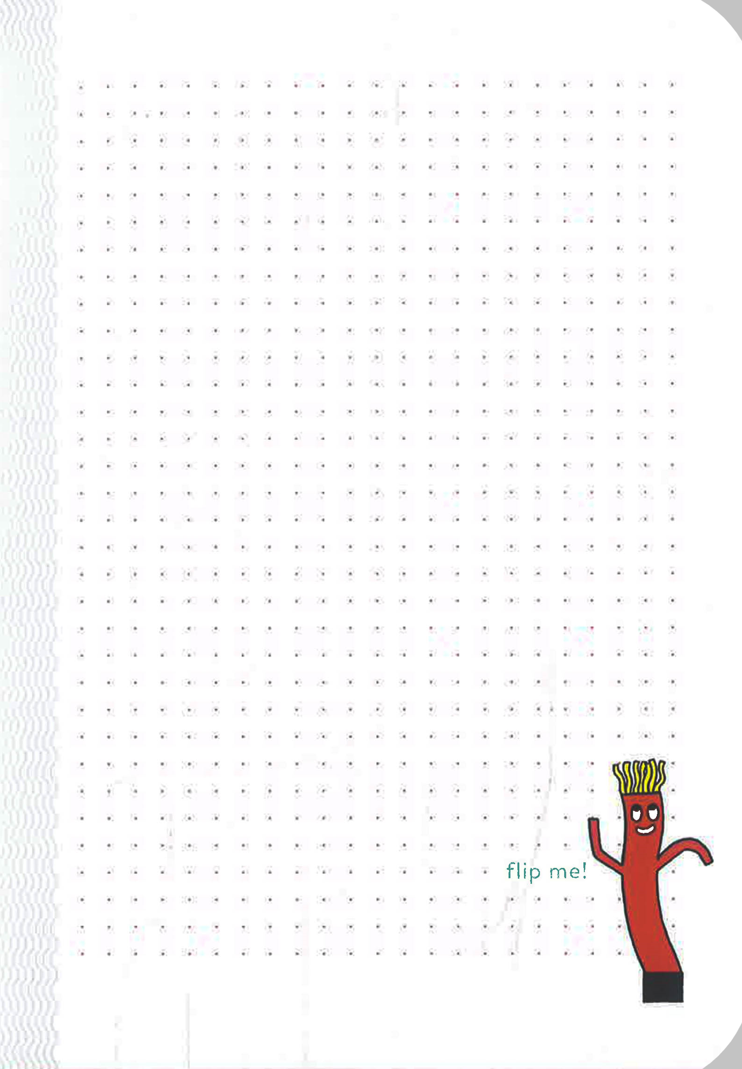 Don't feel like journaling? You can still enjoy the bonus flipbook-style illustrations in the bottom right corner of the journal -- when the pages are turned rapidly, Toby appears to dance, wave, and flail just like the tube guys you know and love from the used car lot.