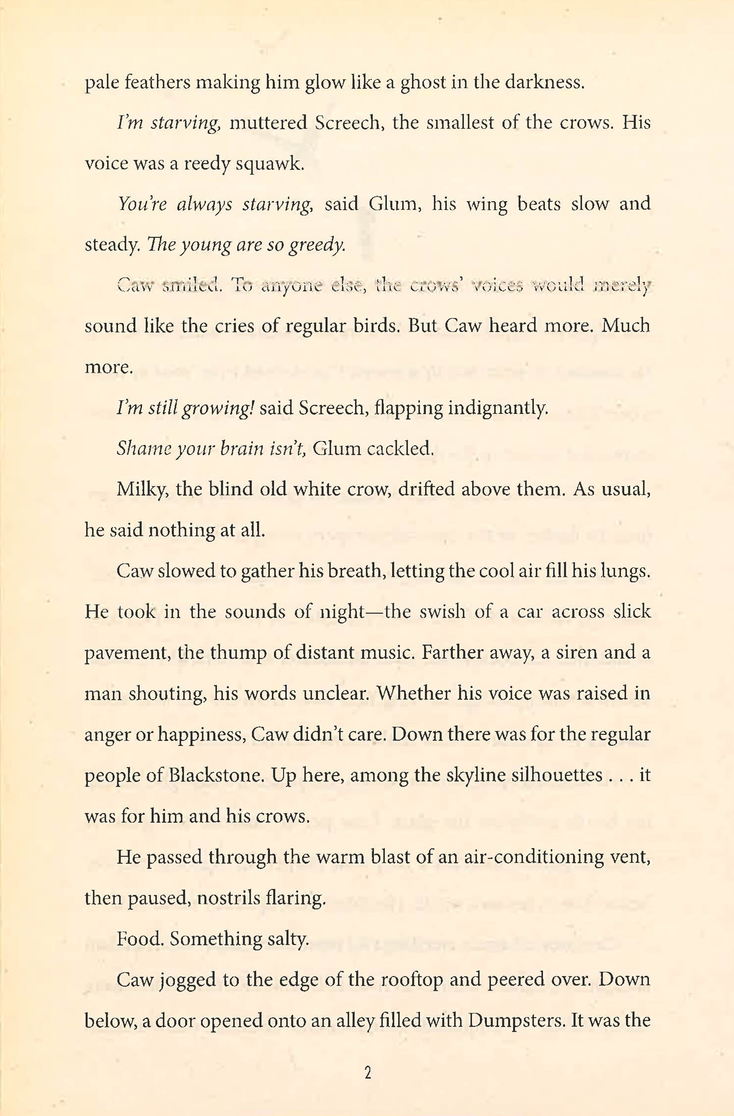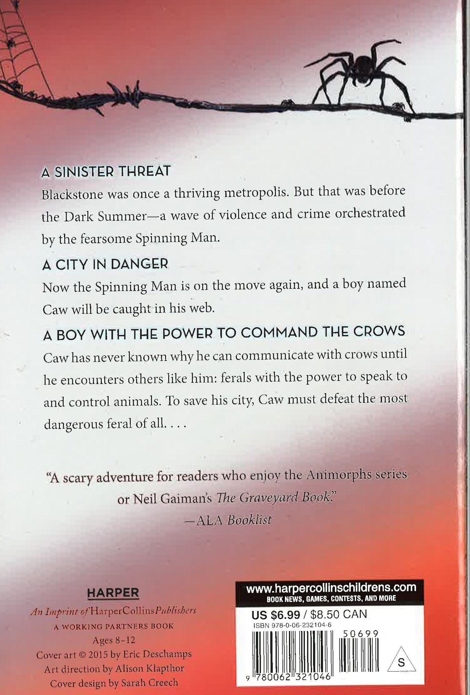 Blackstone was once a thriving metropolis. But that was before the Dark Summer - a wave of violence and crime that swept through the city eight years ago, orchestrated by the fearsome Spinning Man. Now the Spinning Man is on the move again, and a boy named Caw is about to be caught in his web.Caw has never questioned his ability to communicate with crows. But as the threat of a new Dark Summer looms, Caw discovers the underground world of Blackstone’s ferals - those with the power to control animals. Caw is one of them. And to save his city, he must quickly master abilities he never knew he had . . . and prepare to defeat a darkness he never could have imagined.