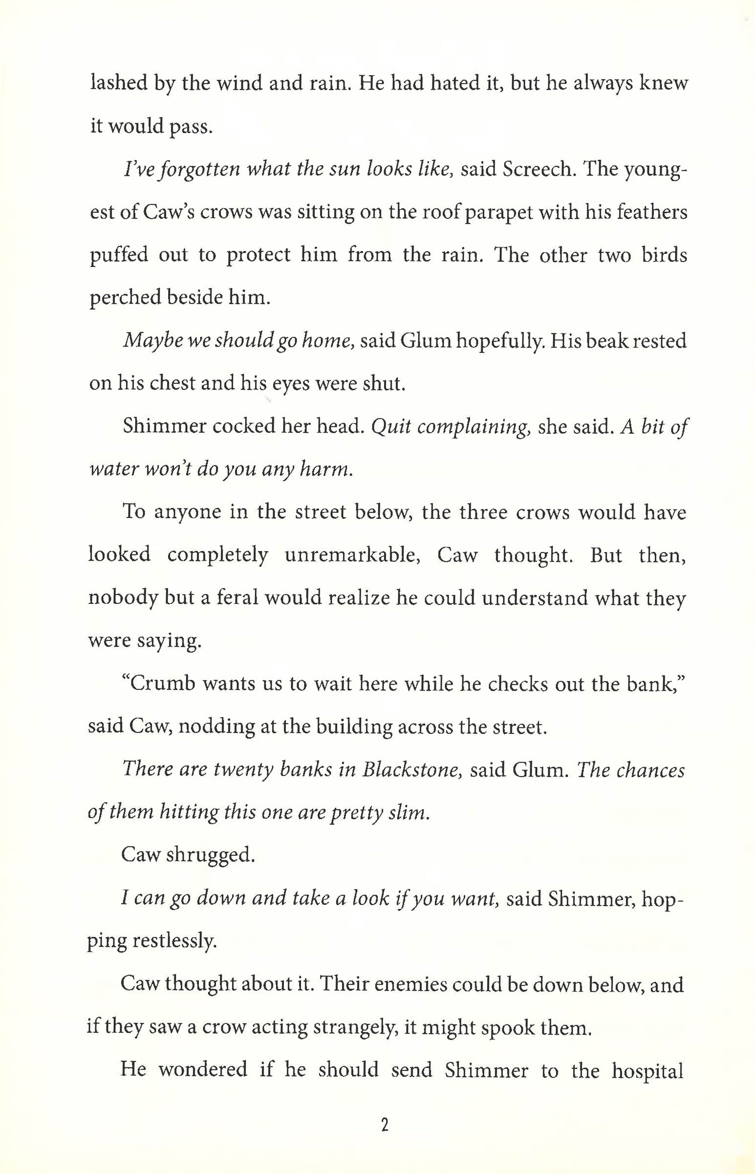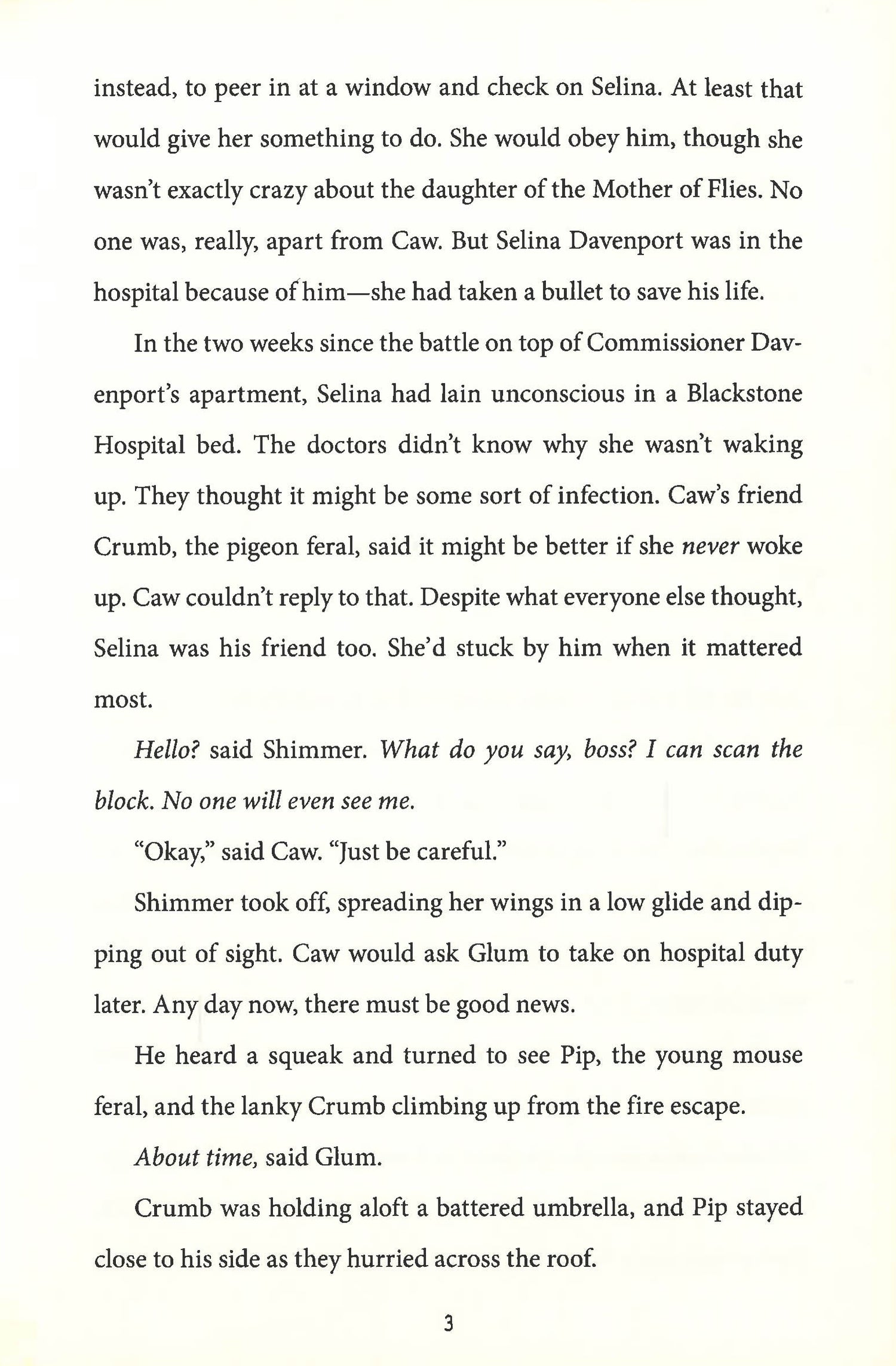 Caw has defeated the dreaded Spinning Man and vanquished the Mother of Flies. But a new feral has appeared - one who intends to uphold the Spinning Man’s dark legacy. Known as the White Widow, this spider feral is determined to destroy Caw and bring Blackstone back into an era of crime and fear.Now everyone Caw holds dear is in danger. And this time Caw may not be able to protect them.