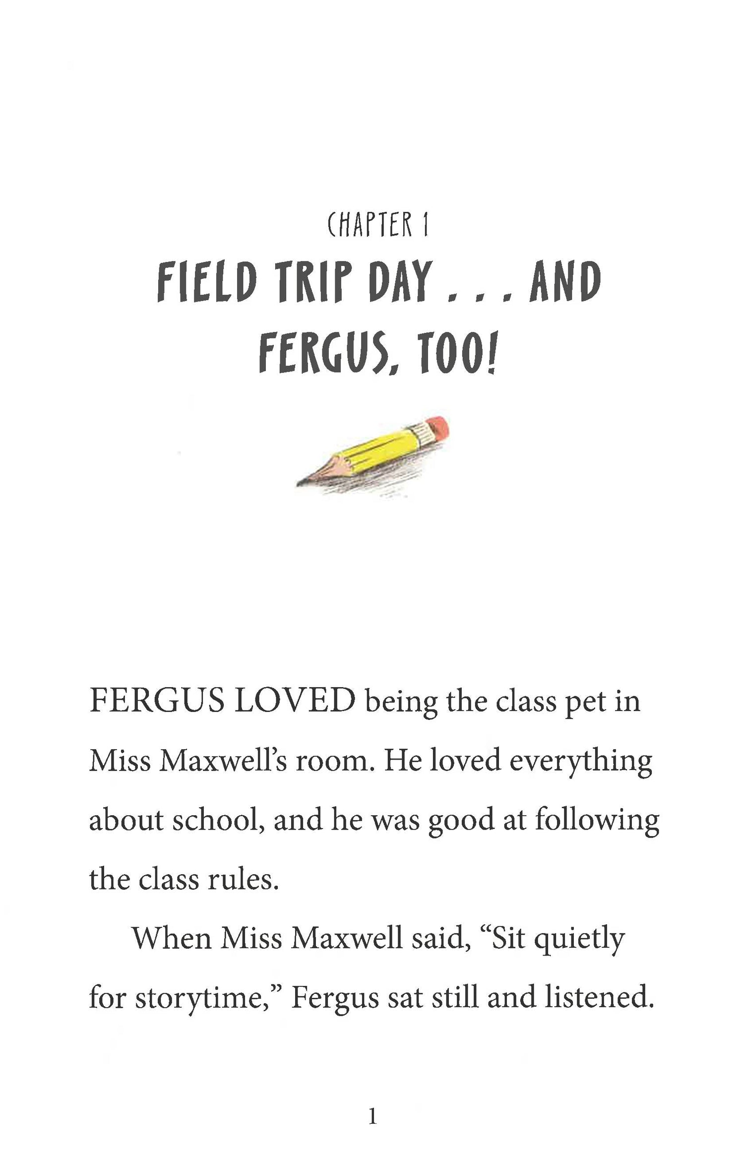 Fergus loves being the class pet. When the teacher plans a field trip to a museum, Fergus doesn't want to miss the fun, so he stows away in a backpack and sets off for an adventure. The museum is a little overwhelming -- huge and full of exciting things to see. Luckily, Fergus meets a new friend, Zeke, who knows the ropes, and together they explore everything from moon rocks to butterflies to a giant dinosaur skeleton. But when it's time for the bus to leave, will Fergus make it back to school to take his place as class pet once more?