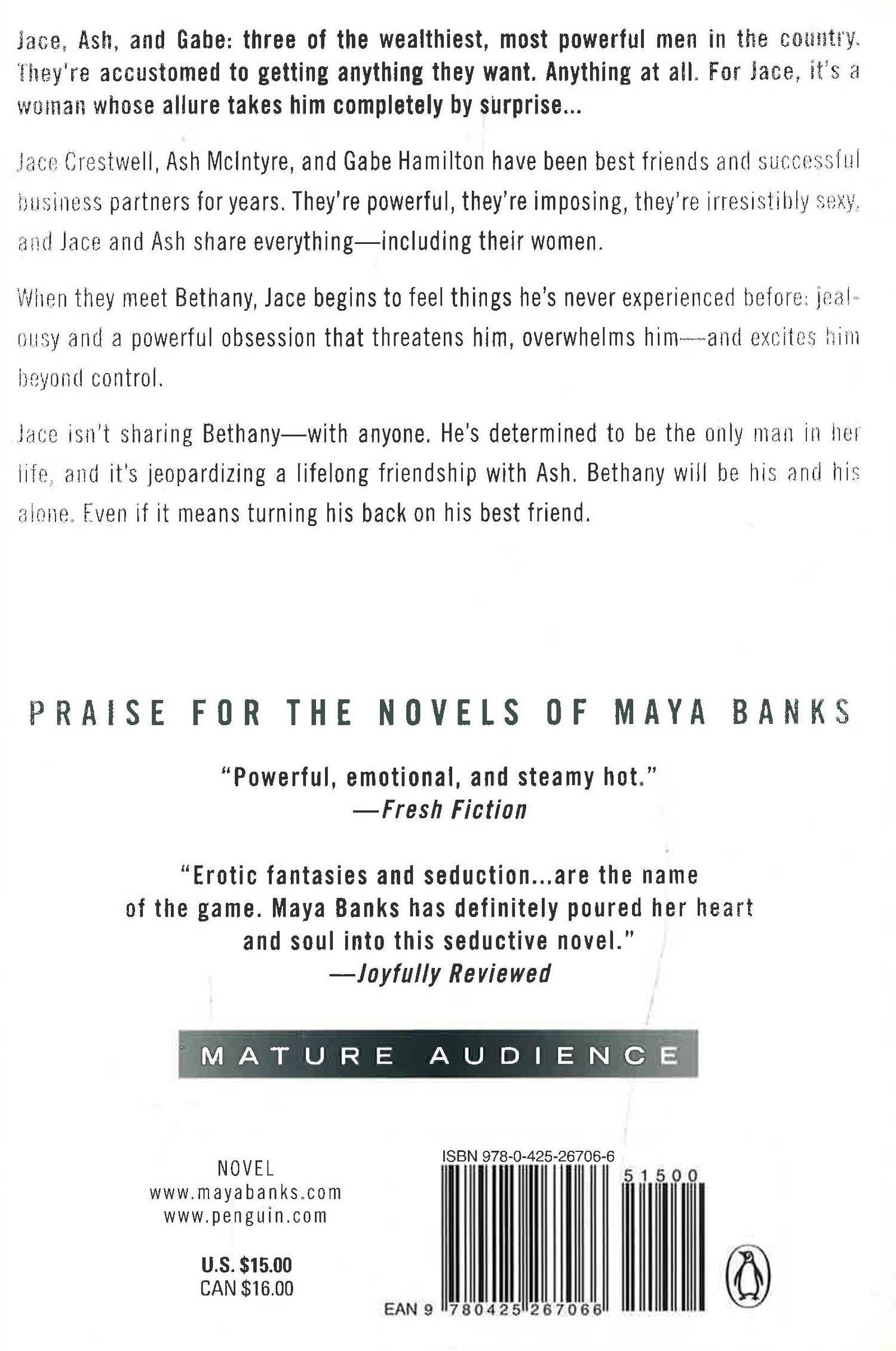 Jace Crestwell, Ash McIntyre, and Gabe Hamilton have been best friends and successful business partners for years. They’re powerful, they’re imposing, they’re irresistibly sexy, and Jace and Ash share everything—including their women.