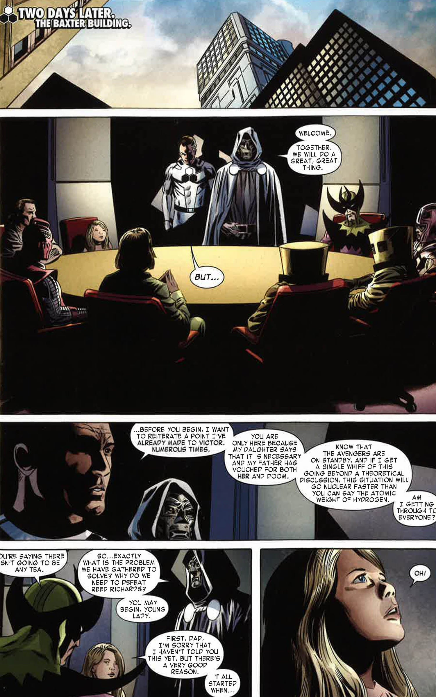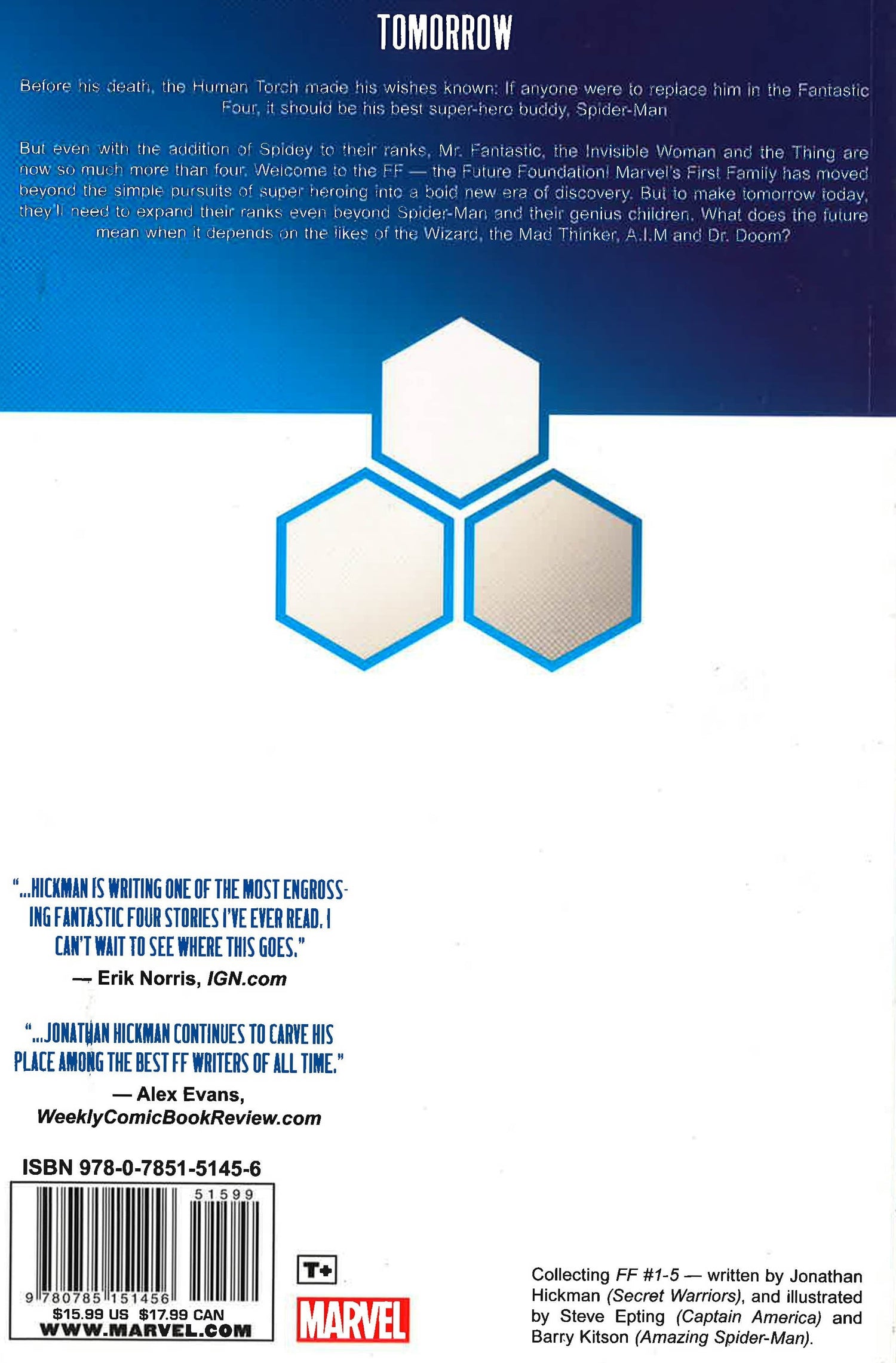 Before his death, the Human Torch made his wishes known: If anyone were to replace him in the Fantastic Four, it should be his best super-hero buddy, Spider-Man. but even with the addition of Spidey to their ranks, Mr. Fantastic, The Invisible Woman and the thing are now so much more than four. Welcome to the FF - the Future Foundation! Marvel's First Family has moved beyond the simple pursuits of super heroing into a bold new era of discovery. but to make tomorrow today, they'll need to expand their ranks even beyond Spider-Man and their genius children. What does the future mean when it depends on the likes of the Wizard, the Mad thinker, A.I.M. and Dr. Doom?