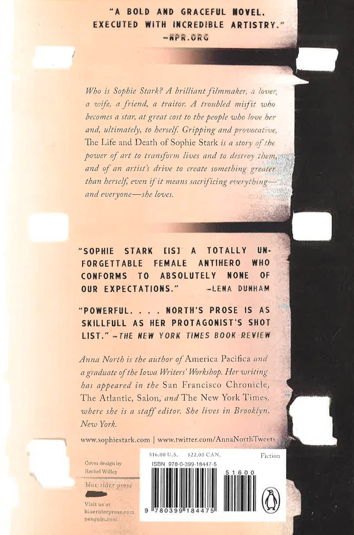 Winner of the 2016 Lambda Literary Award for Bisexual Fiction "I read The Life and Death of Sophie Stark with my heart in my mouth. Not only a dissection of genius and the havoc it can wreak, but also a thunderously good story."--Emma Donoghue, New York Times bestselling author of Room "This novel is perceptive, subtle, funny and lingers in unexpected ways. The analysis of a woman who puts her art above all else is equal parts inspiration and warning story. Anna North makes prose look easy."--Lena Dunham Who is Sophie Stark? A brilliant filmmaker, a lover, a wife, a friend, a traitor. A troubled misfit who becomes a star, at great cost to the people who love her and, ultimately, to herself. Gripping and provocative, The Life and Death of Sophie Stark is a story of the power of art to transform lives and to destroy them, and of an artist's drive to create something greater than herself, even if it means sacrificing everything--and everyone--she loves.