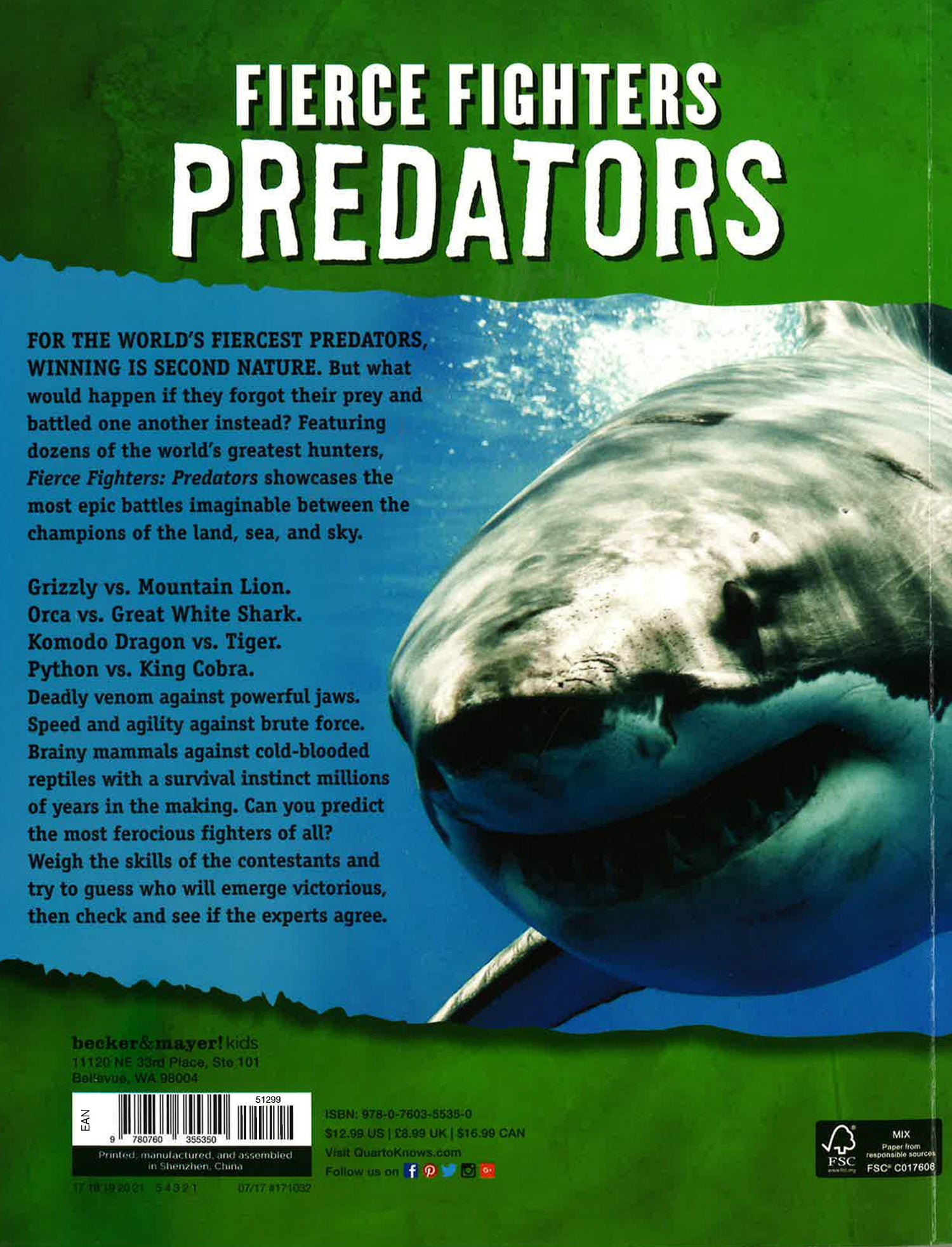 For the world's fiercest predators, winning is second nature. But what would happen if they forgot their prey and battled one another, instead? Featuring dozens of the world's greatest hunters, Fierce Fighters: Predators showcases the most epic battles imaginable between the champions of the land, sea, and sky.
