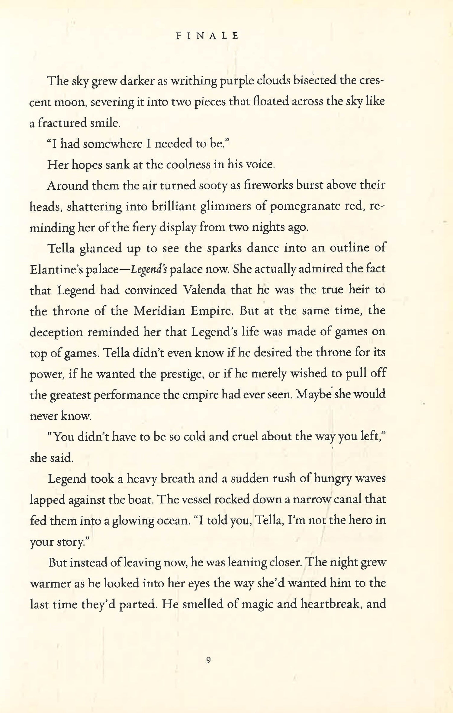 With lives, empires, and hearts hanging in the balance, Tella must decide if she's going to trust Legend or a former enemy. After uncovering a secret that upends her life, Scarlett will need to do the impossible. And Legend has a choice to make that will forever change and define him.