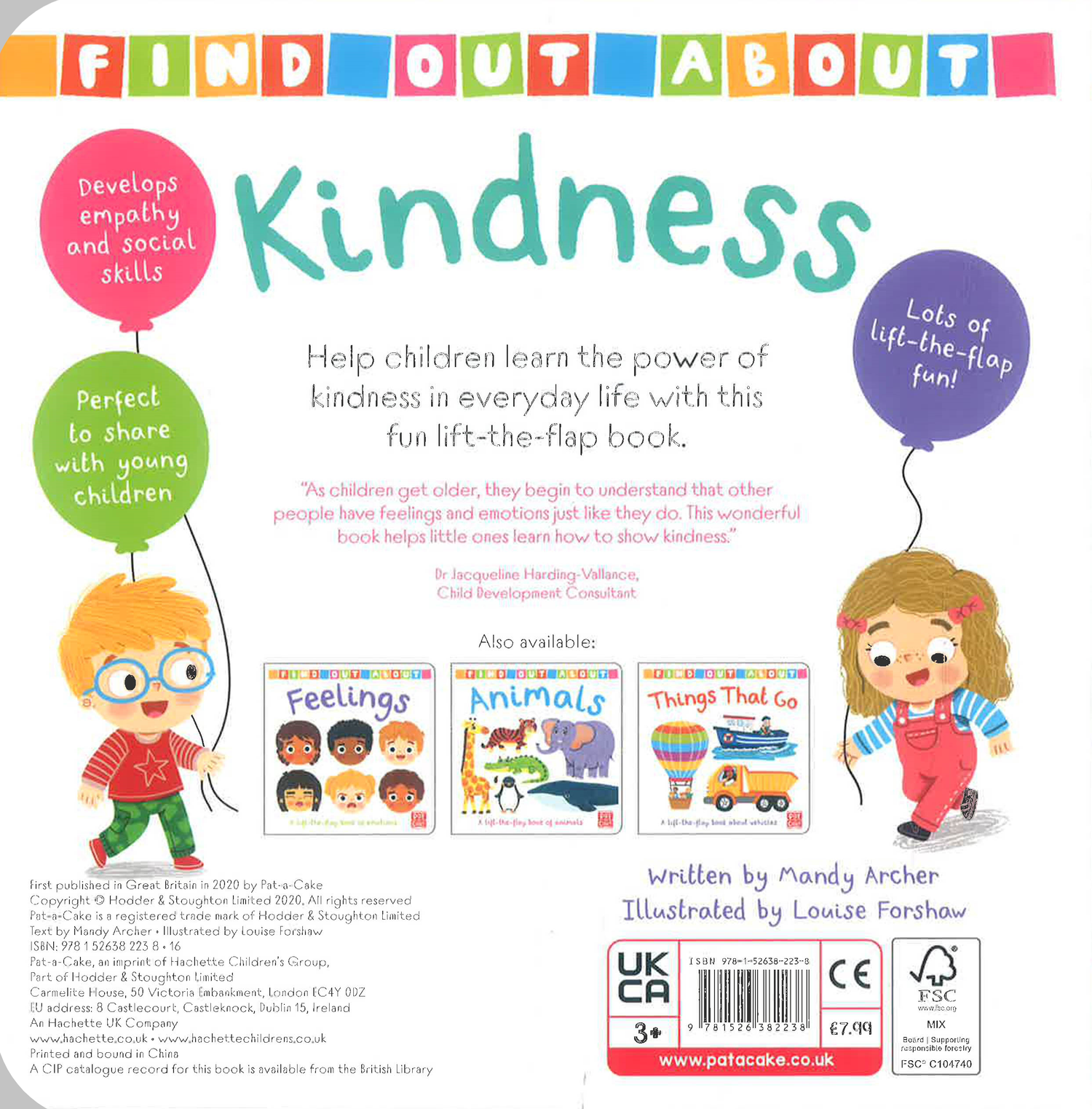 Find Out About: Kindness helps busy preschoolers learn about their interactions with others as they start to experience nursery, school and the wider world. Featuring friendly child characters and familiar situations with siblings, friends and family, they will learn to empathise and socialise others. With fun flaps to lift, this is an excellent book for children and parents to share together.