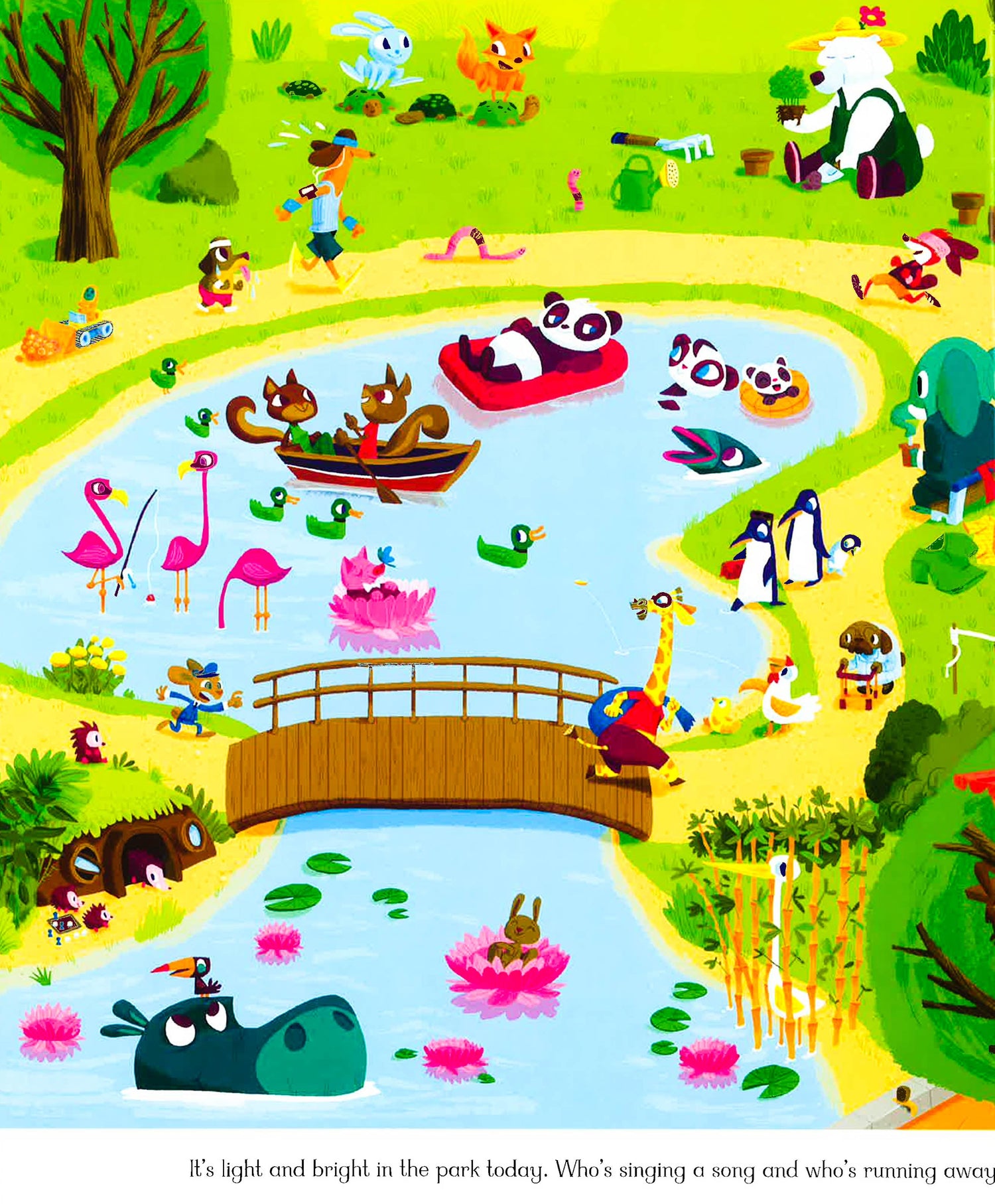 It's light and bright in the park today. Who's singing a song and who's running away? Who's cross with a ball? Who's out for a jog? Who's having a snooze? And WHERE'S THE FROG? Follow the frog as he goes on an adventure through this busy book, with plenty of other fun things to spot and stories to follow on the way.