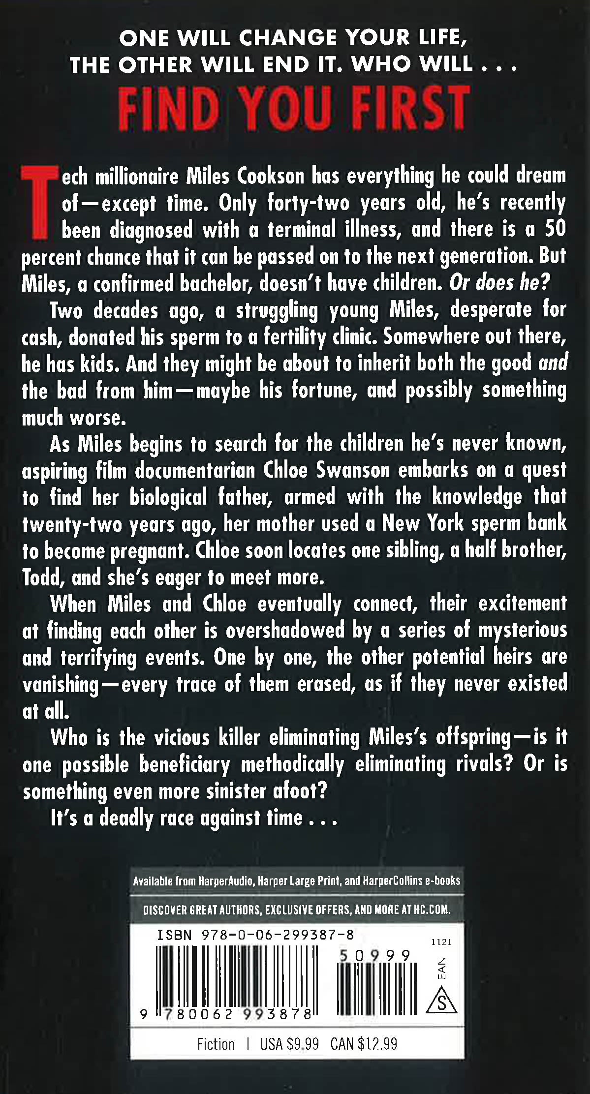 Tech millionaire Miles Cookson has more money than he can ever spend, and everything he could dream of—except time. He has recently been diagnosed with a terminal illness, and there is a fifty percent chance that it can be passed on to the next generation. For Miles, this means taking a long hard look at his past . . .