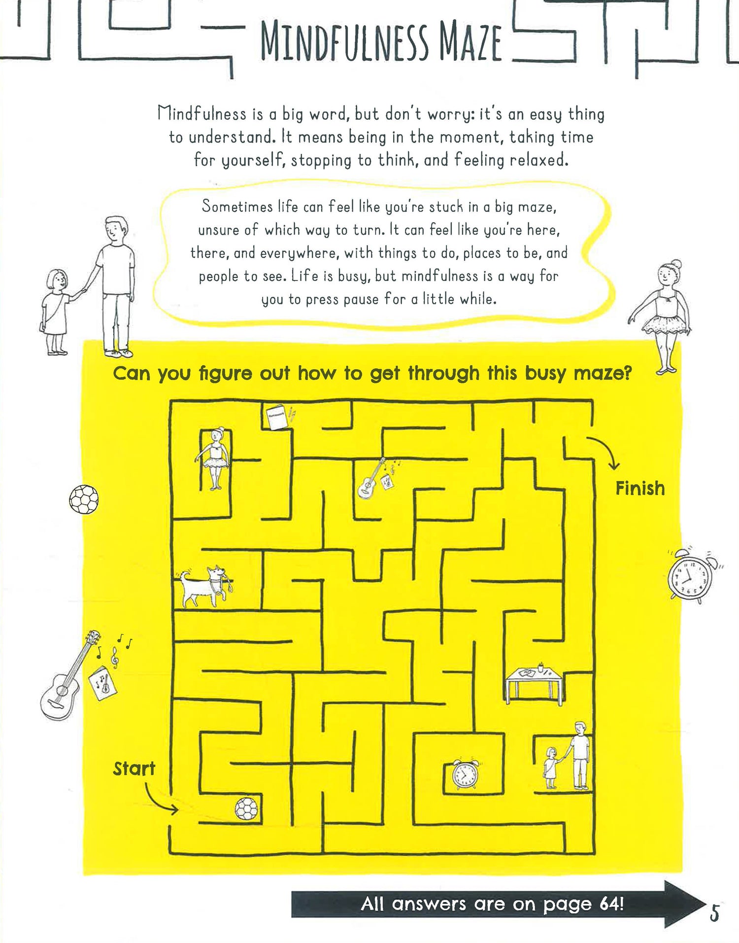 Split over two sections that focus on mindfulness and emotions, Find Your Happy Place aims to help kids find calm, be present, and make sense of the jumble of feelings within. Each section is bursting with puzzles, games, drawing prompts, things to color, stickers, and other fun activities!