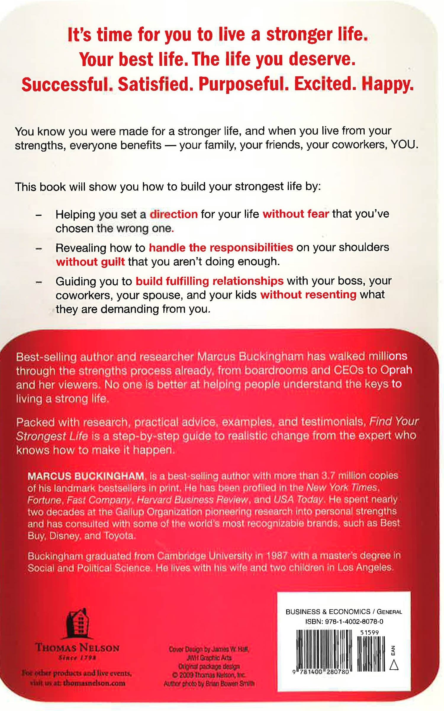 In Find Your Strongest Life, Marcus Buckingham reveals the powerful key to bring fulfillment, peace, and control into a woman's life. In today's world, can a woman truly "have it all"? A fulfilling career full of passion and performance? A belief that she is truly becoming the best, authentic version of herself? A happy, healthy life outside of work? In Find Your Strongest Life, Marcus Buckingham reveals the powerful key to help women draw enough strength from life to feel fulfilled, loved, successful, and in control. Even more, he helps women reconnect with their purpose and gives a starting point for change. A research-based message that applies to work and life, Find Your Strongest Life shows women a "unified theory" for how they really can have it all . . . the right kind of all.