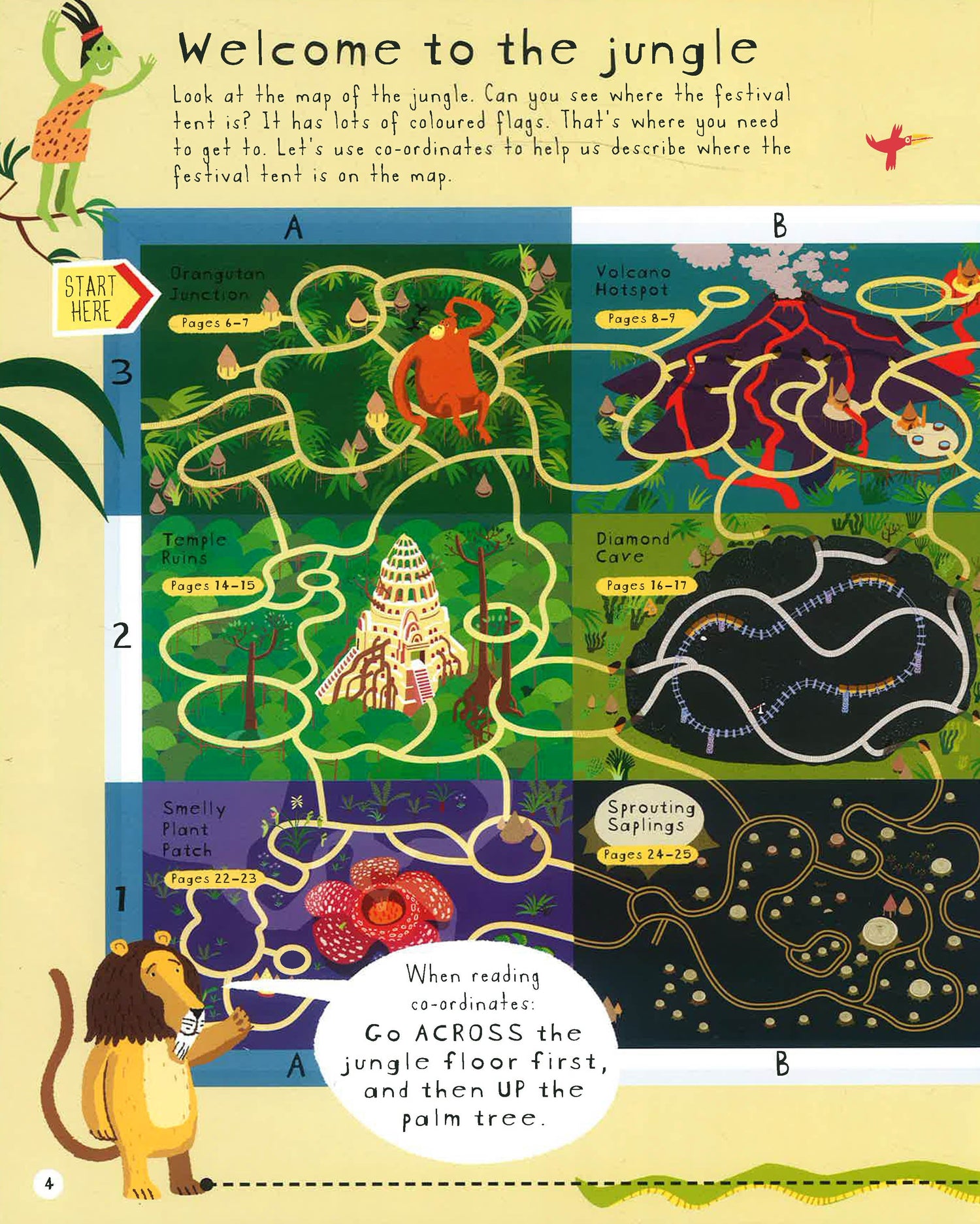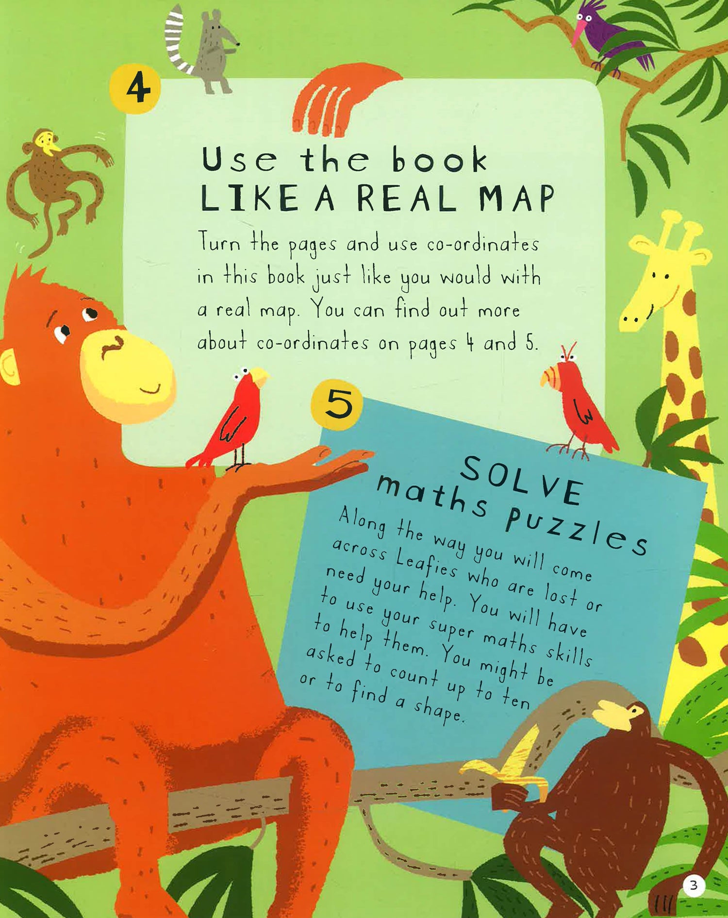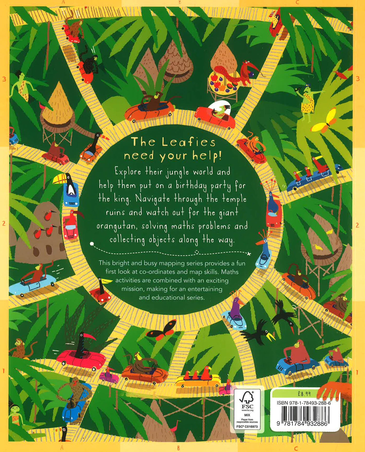 The Leafies need your help! Explore their jungle world and help them put on a birthday party for the king. Navigate through the temple ruins and watch out for the giant orangutan, solving maths problems and collecting objects along the way. This bright and busy mapping series provides a fun first look at co-ordinates and map skills. Maths activities combined with an exciting mission make an entertaining and educational jungle adventure.