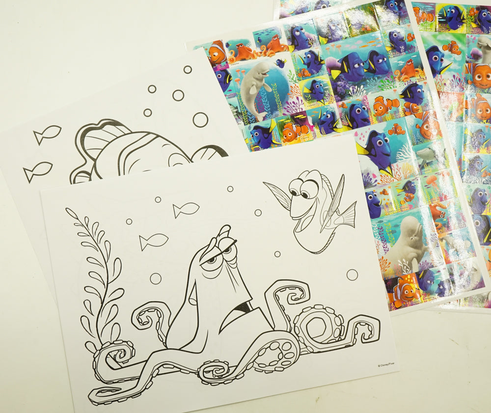 Have fun with the 100 stickers and 12 coloring pages of Dory, Nemo and their cute friends.