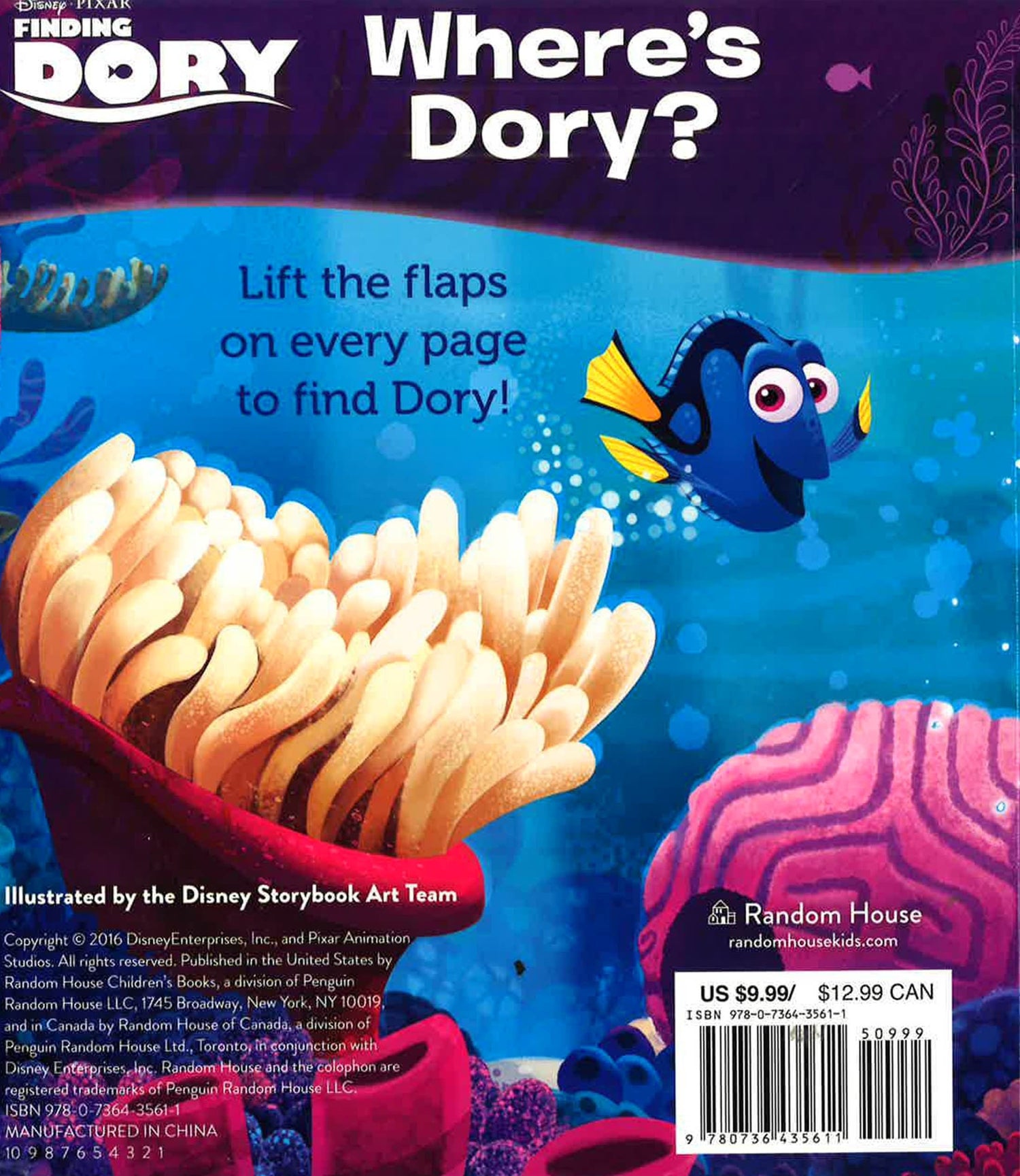 The highly anticipated sequel to Disney/Pixar Finding Nemo, Disney/Pixar Finding Dory releases in theaters on June 17, 2016. The animated film reunites the friendly-but-forgetful blue tang fish with her loved ones, and everyone learns a few things about the true meaning of family along the way. This lift-the-flap book with glitter on every page is perfect for boys and girls ages 0 to 3.