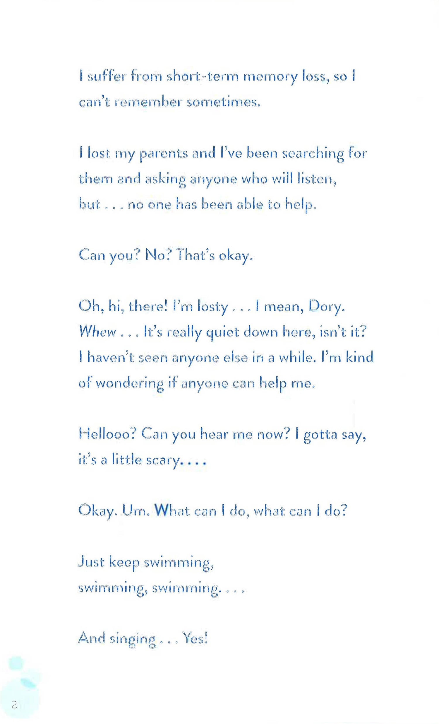 Finding Dory reunites the friendly-but-forgetful blue tang fish with her loved ones, and everyone learns a few things about the true meaning of family along the way. In this middle grade novel, get the story straight from the fishes' mouths! Explore the stories of many new characters from the film through hilarious confessionals and unique, colorful artwork that interacts with the text!