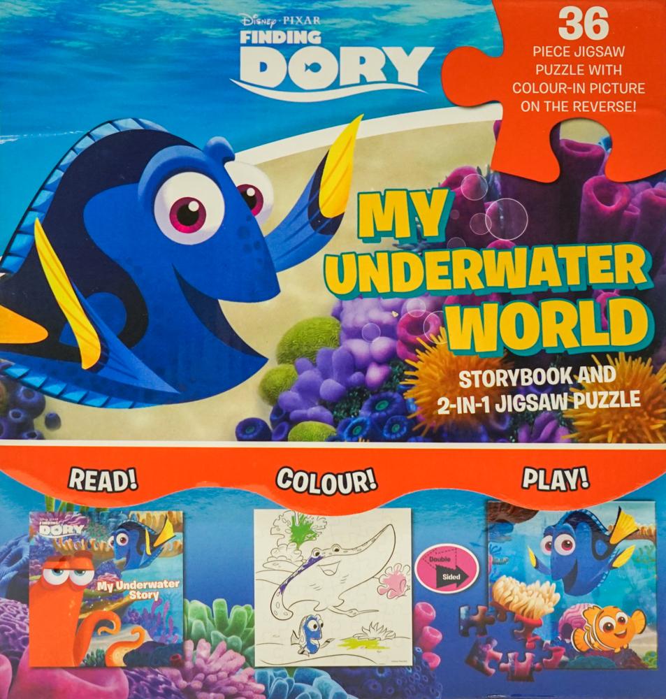 Join Dory and her friends on a fin-tastic journey with this Finding Dory carry case. This carry case contains a storybook and a 36-piece double-sided jigsaw puzzle. After putting the puzzle together, turn it over for some fun colouring using your favourite crayons.