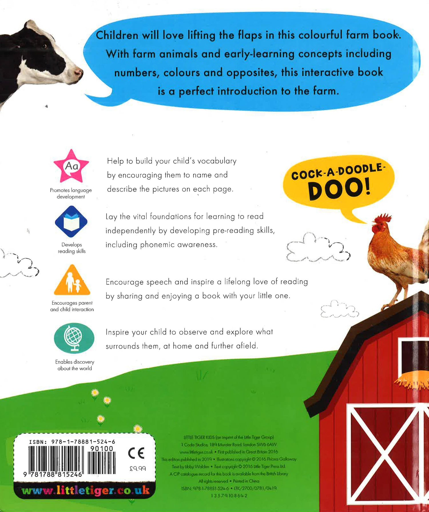 Children will love lifting the flaps in this colorful farm book. With farm animals and early-learning concepts including numbers, colors, and opposites, this interactive book is a perfect introduction to the farm.