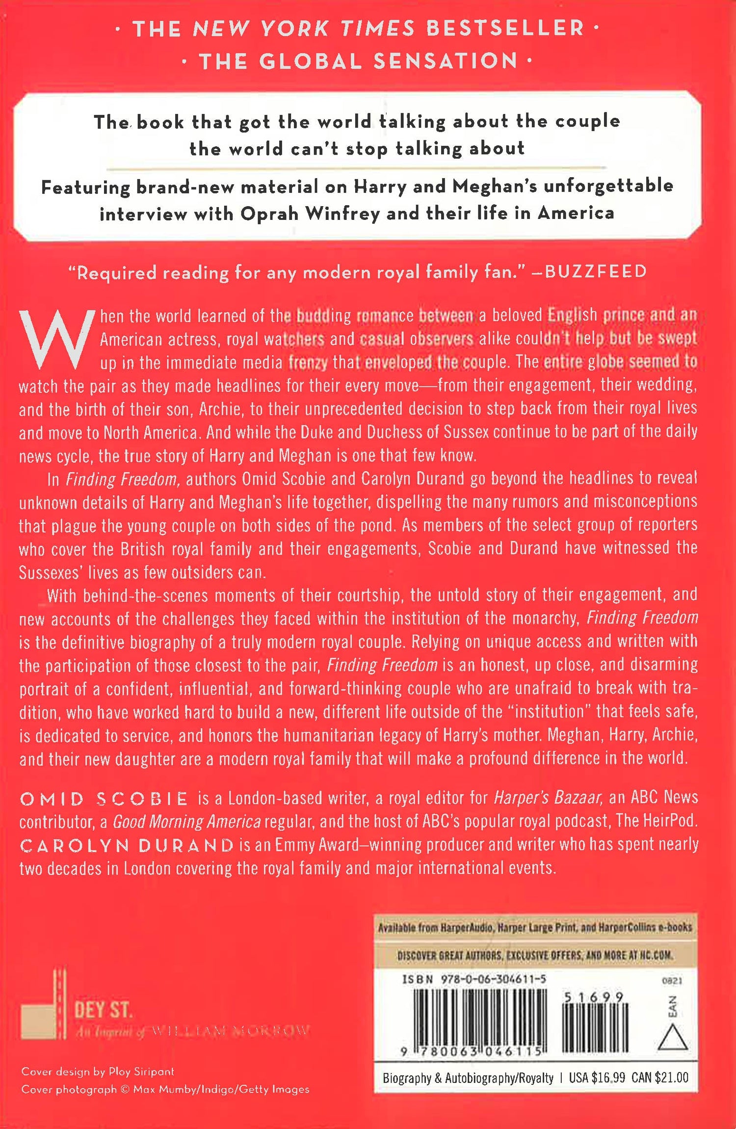 With unique access and written with the participation of those closest to the couple, Finding Freedom is an honest, up-close, and disarming portrait of a confident, influential, and forward-thinking couple who are unafraid to break with tradition, determined to create a new path away from the spotlight, and dedicated to building a humanitarian legacy that will make a profound difference in the world.