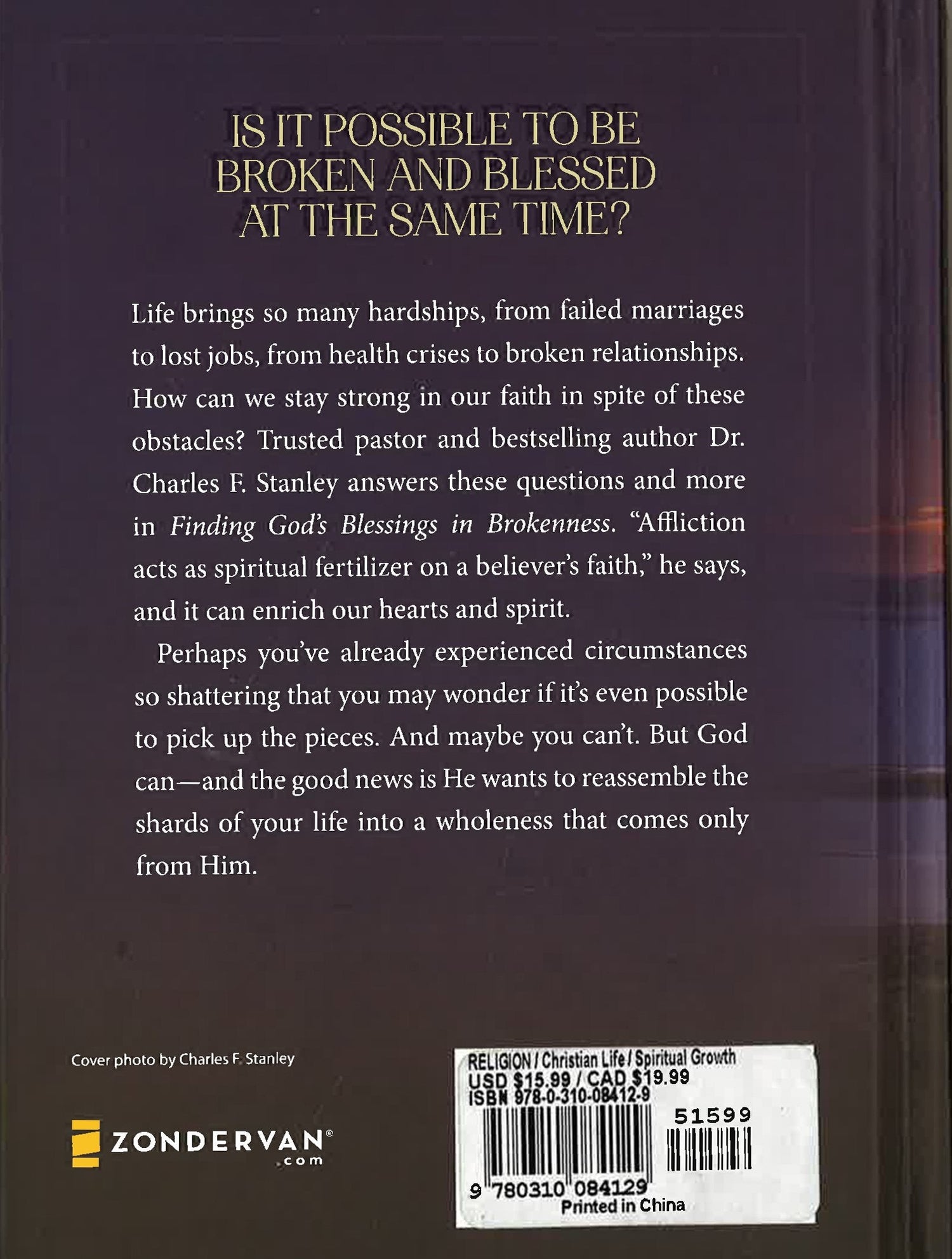 Is it possible to be broken and blessed at the same time?Life brings so many hardships, from failed marriages to lost jobs, from health crises to broken relationships. How can we stay strong in our faith in spite of these obstacles? Trusted pastor and bestselling author Dr. Charles F. Stanley answers these questions and more in Finding God's Blessings in Brokenness. "Affliction acts as spiritual fertilizer on a believer's faith," he says, and can enrich our hearts and spirit.Perhaps you've already experienced circumstances so shattering that you may wonder if it's even possible to pick up the pieces. And maybe you can't. But God can-and the good news is He wants to reassemble the shards of your life into a wholeness that comes only from Him.