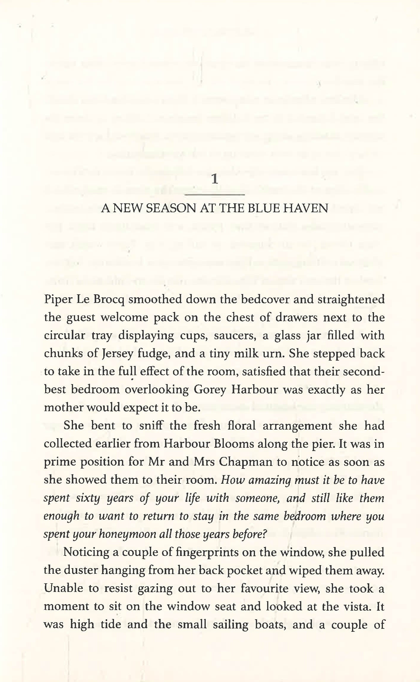 Piper Le Brocq is happily single after the disastrous ending of her engagement eighteen months before. The only man in her life is Jax, her best friend and cousin, who spends his life teaching locals how to forage and taking tourists on boat trips around the island. Her days are filled with helping out at her mother's guest house and selling her glass mosaics at The Cabbage Patch emporium in Trinity.