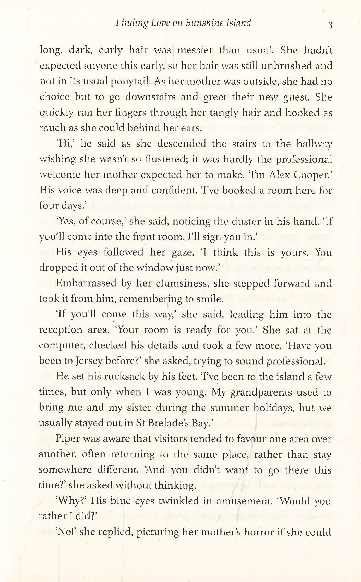 Piper loves living on the Sunshine Island, where the neighbours look out for each other and visitors are welcome. So, when handsome guest Alex Cooper arrives at the guest house to check up on his grandfather, she welcomes him to the sunny island. And when he needs help after his grandfather is injured, she's quick to get involved.