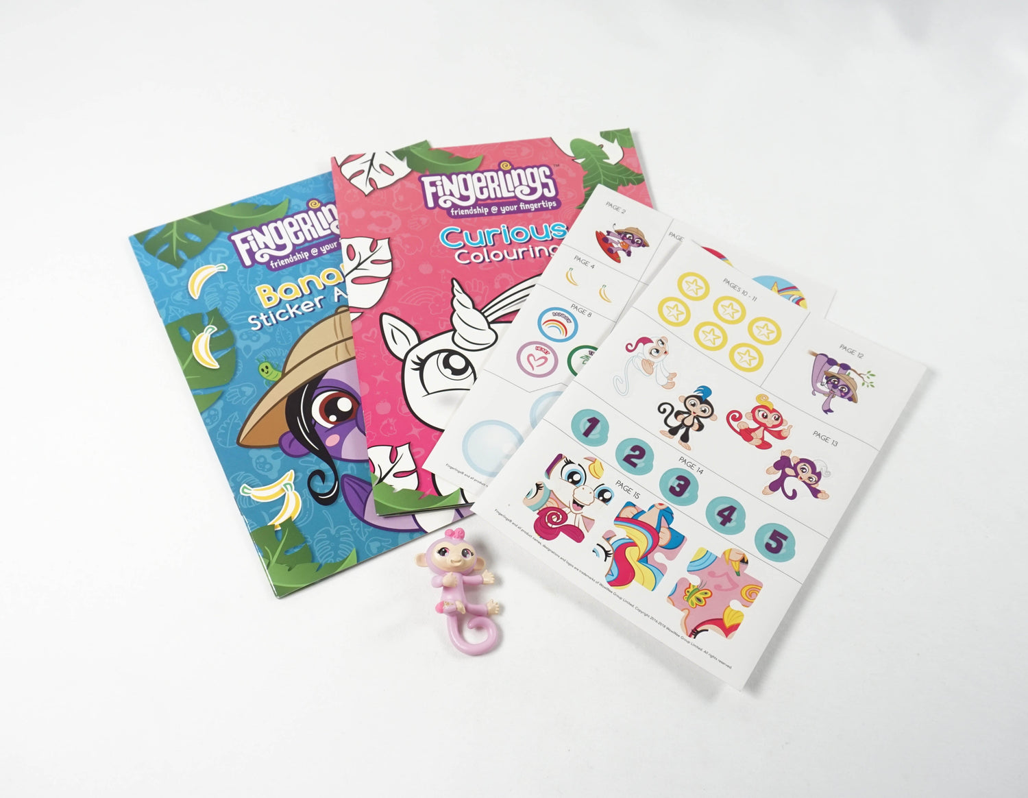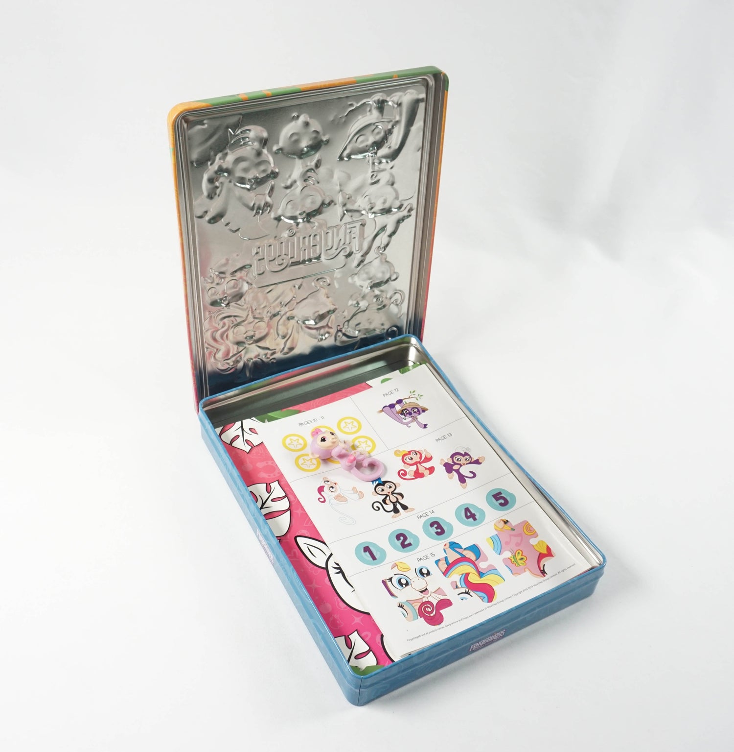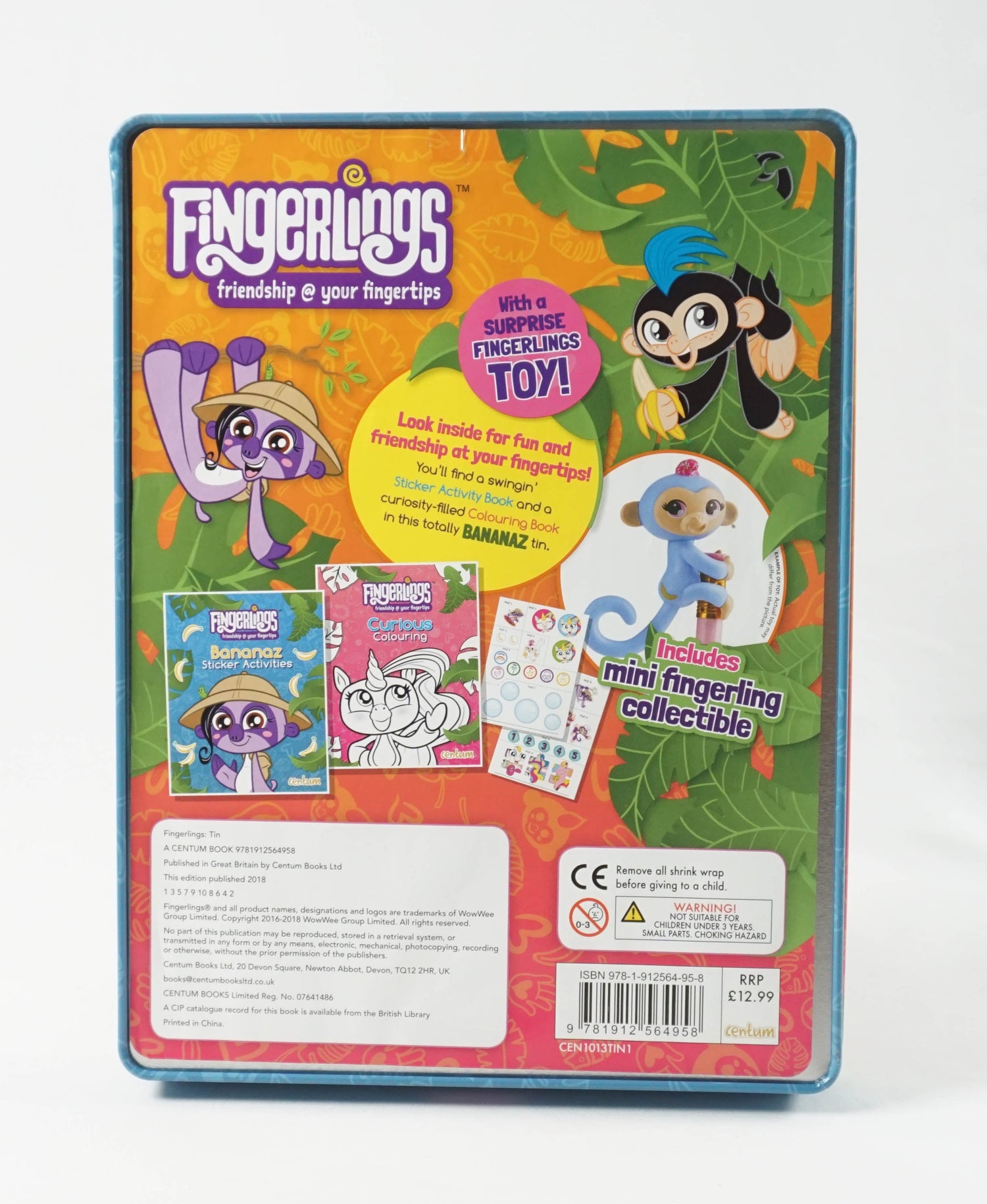 You'll find a swinging Sticker Activity book and a curiosity-filled Coloring Book in this totally Banana's tin