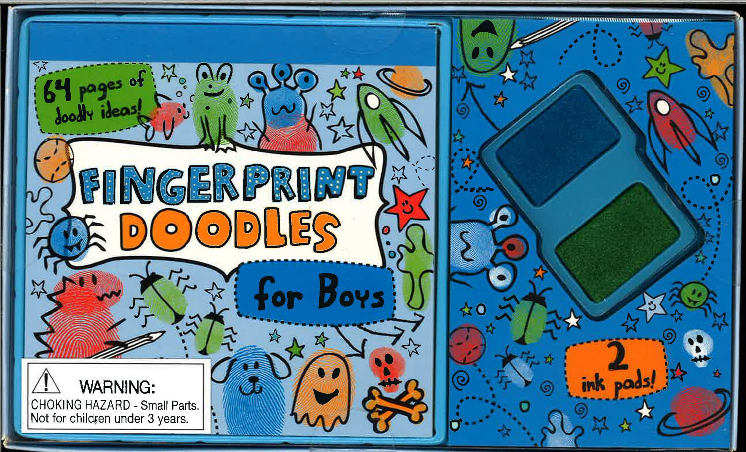 Mini fingerprint doodles kit. Create cool and colorful designs with 64 pages of inspiration for tons of doodle drawings.