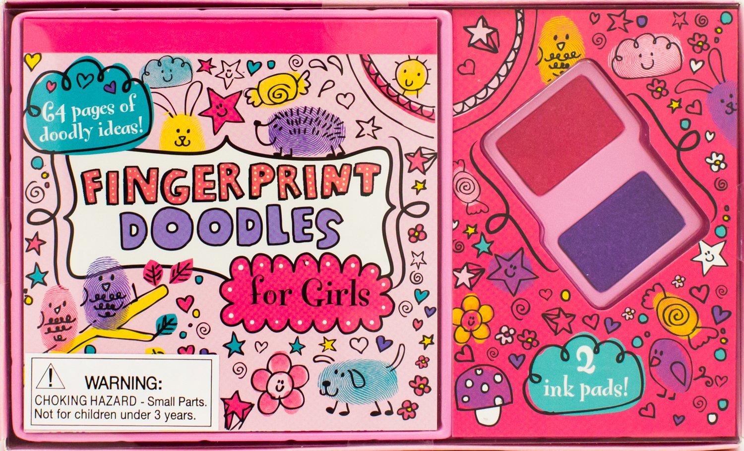 Mini fingerprint doodles kit. Create cute and colorful designs with 64 pages of inspiration for tons of doodle drawings.